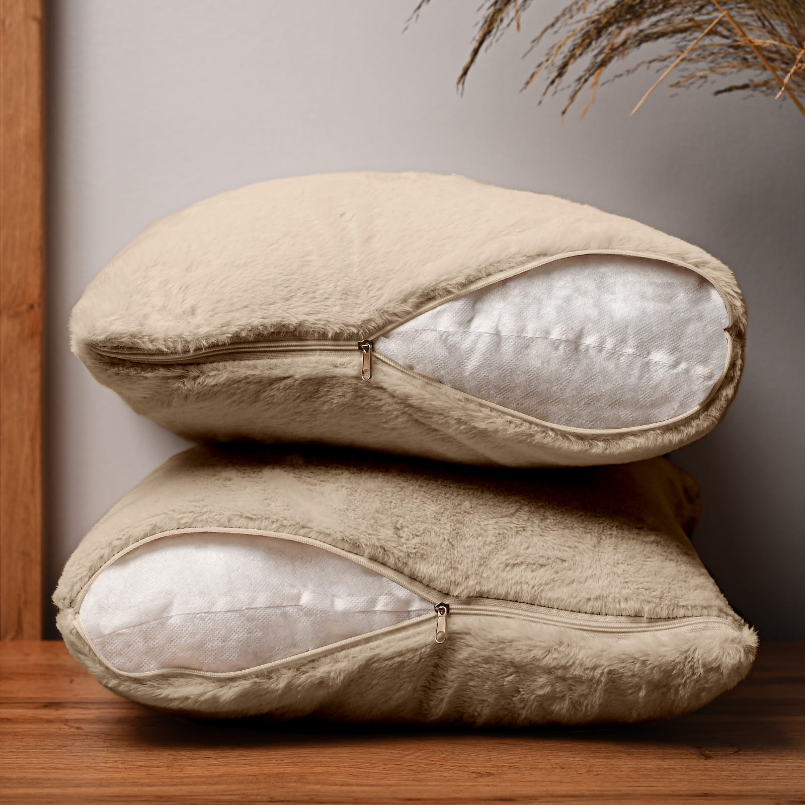 Dekoracyjna poszewka na poduszkę 45x45 cm w kolorze piaskowym z imitacji futra