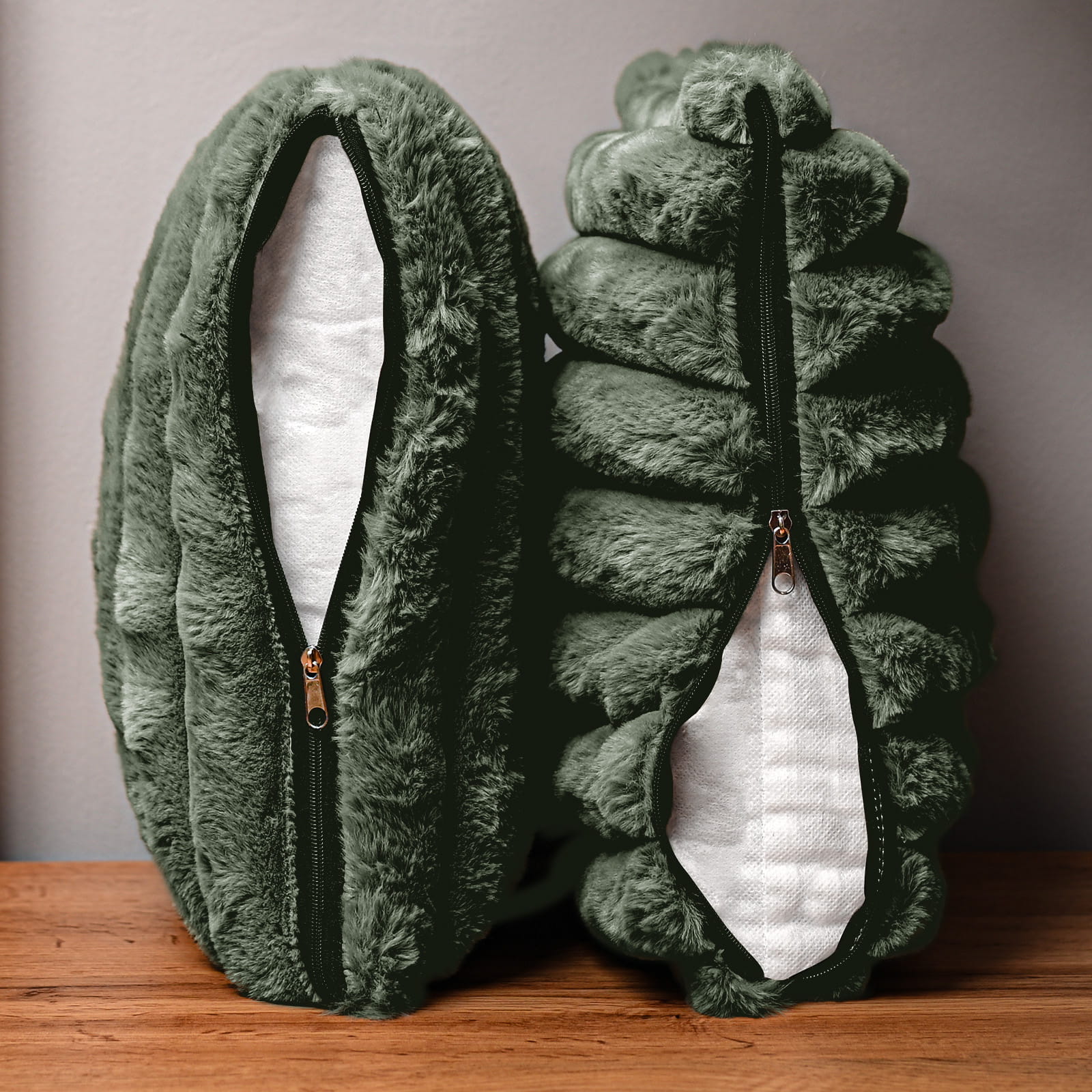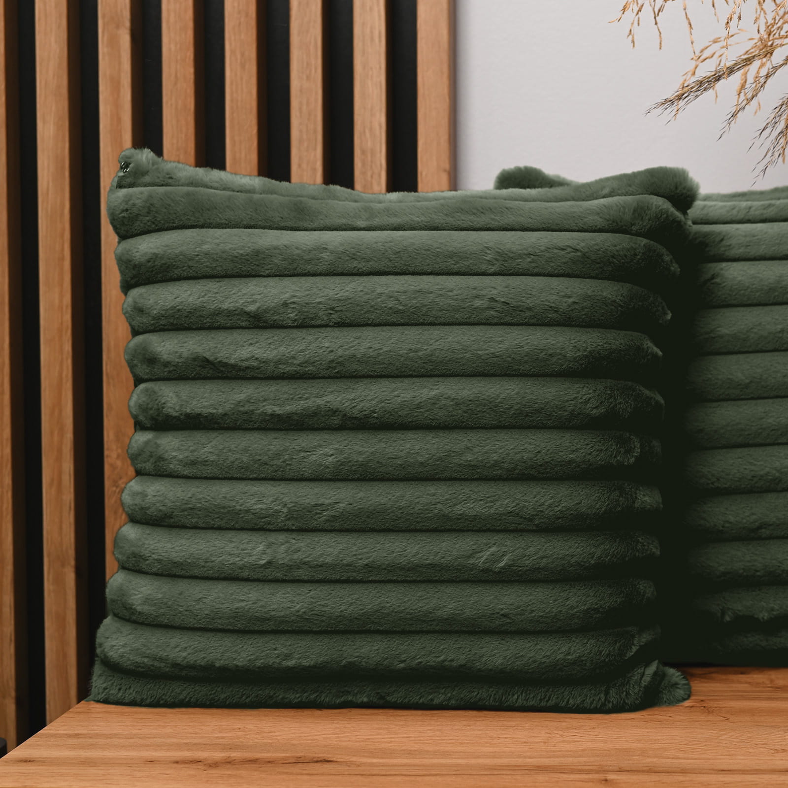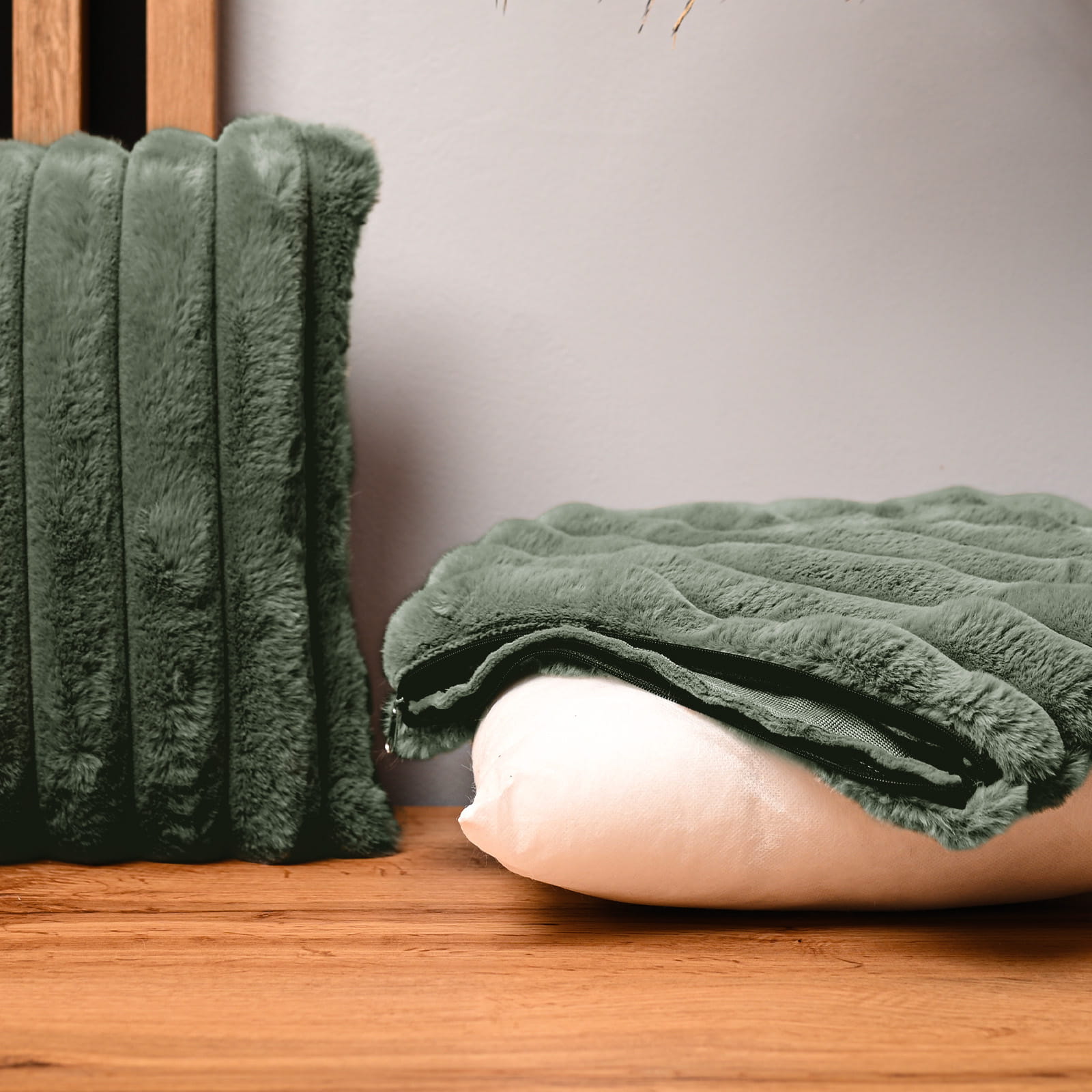 Dekoracyjna poszewka na poduszkę 45x45 cm w kolorze zielonym z imitacji futra z przeszyciami
