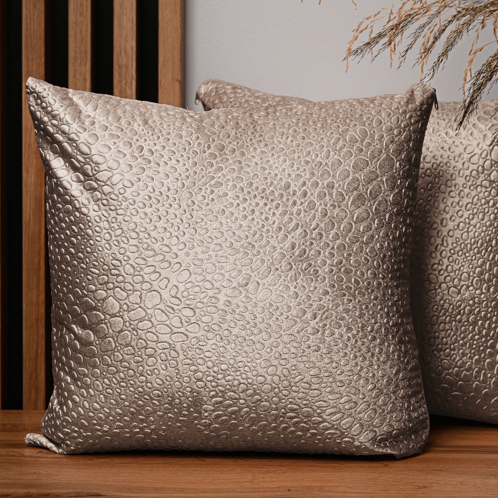 Dekoracyjna poszewka na poduszkę 50x50 cm w kolorze beżowym z tkaniny welurowej z teksturą “kropelki"