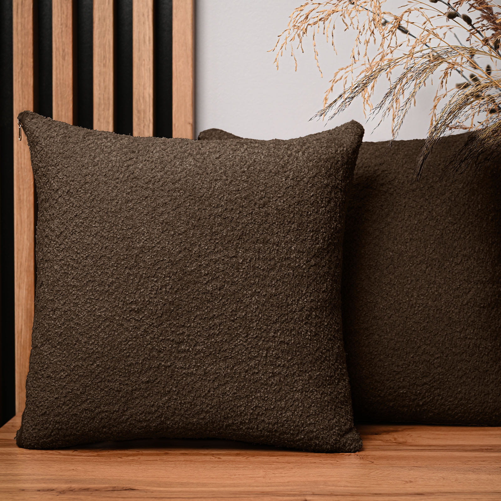 Dekoracyjna poszewka na poduszkę 50x50 cm w kolorze czekoladowym z tkaniny szenilowej z teksturą