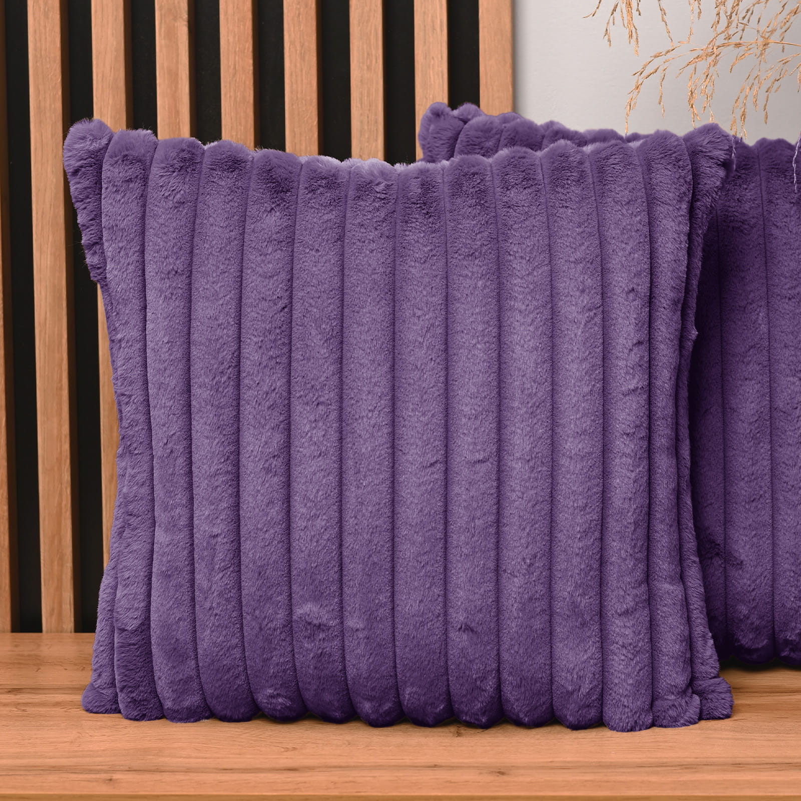 Dekoracyjna poszewka na poduszkę 50x50 cm w kolorze fioletowym z imitacji futra z przeszyciami