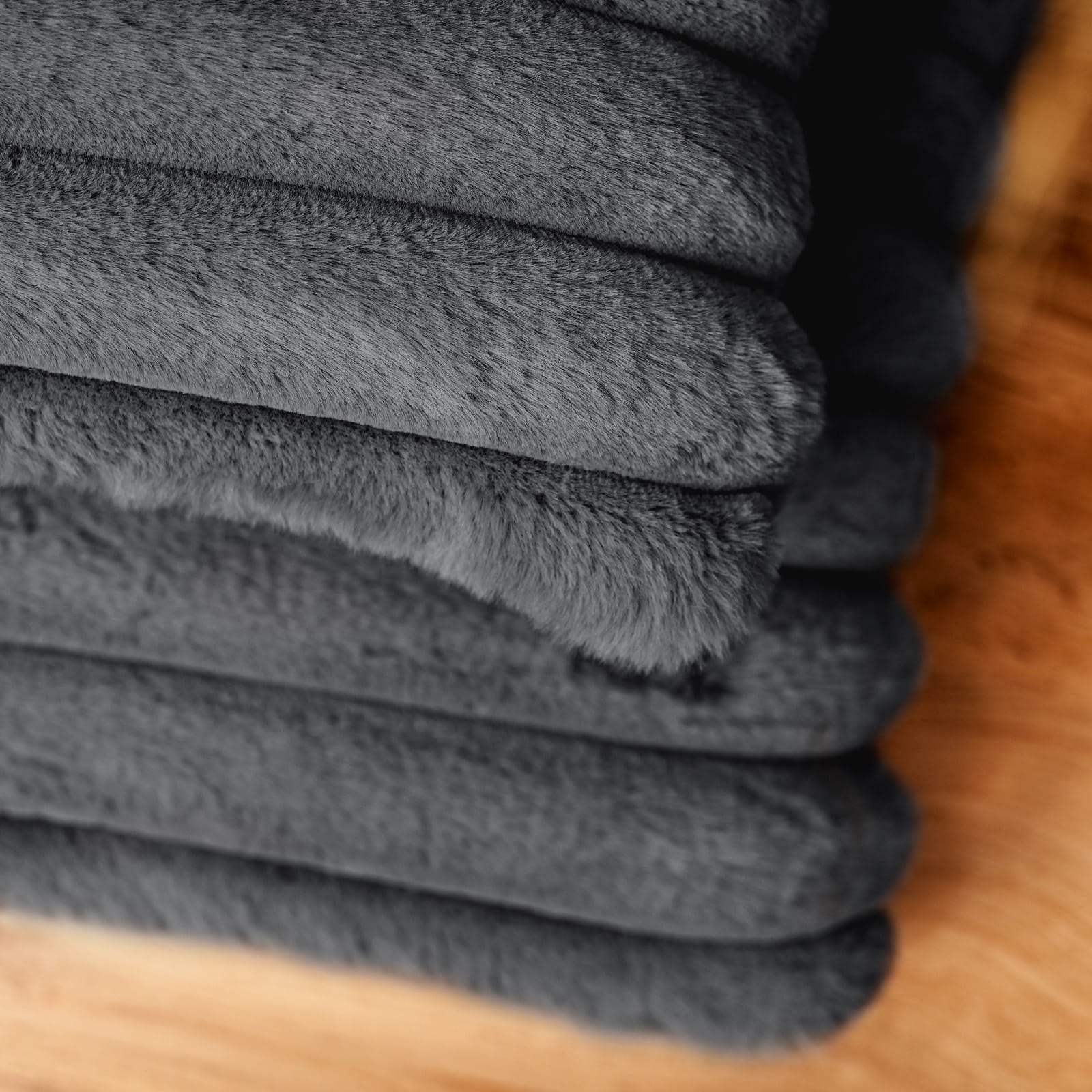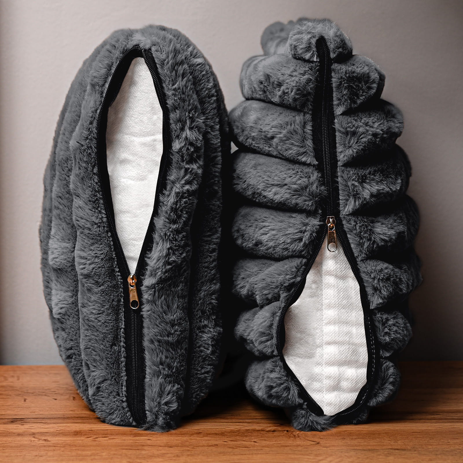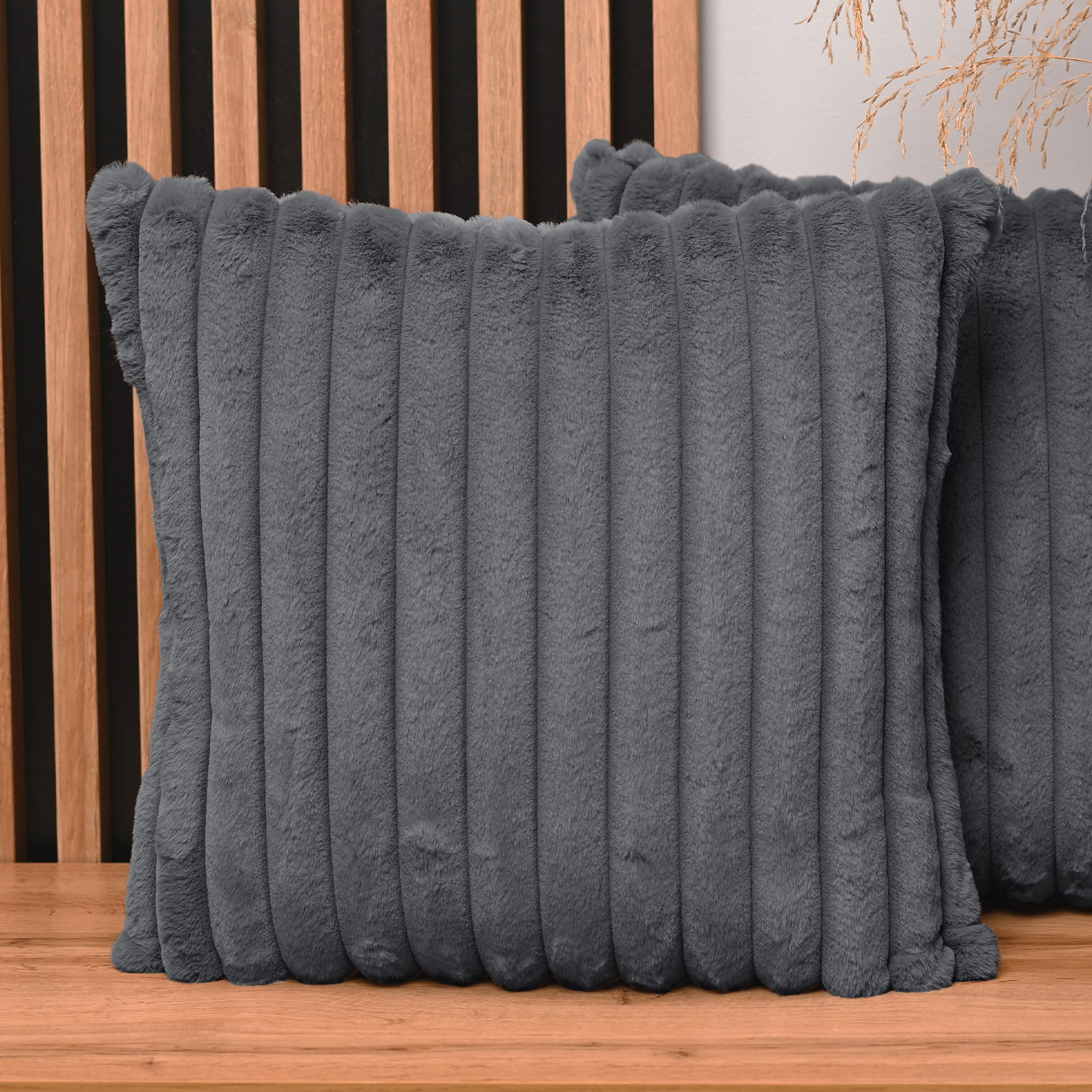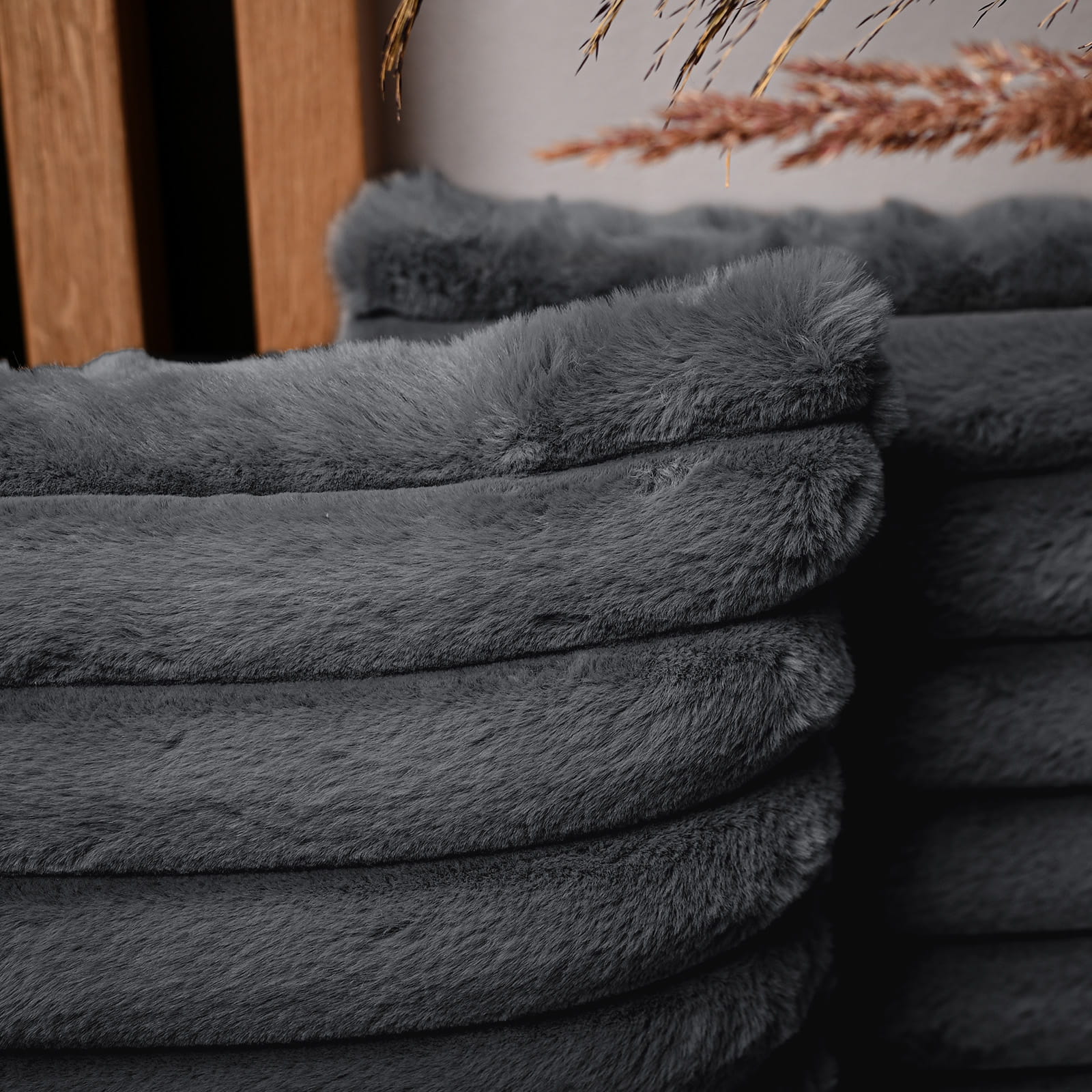 Dekoracyjna poszewka na poduszkę 50x50 cm w kolorze grafitowym z imitacji futra z przeszyciami