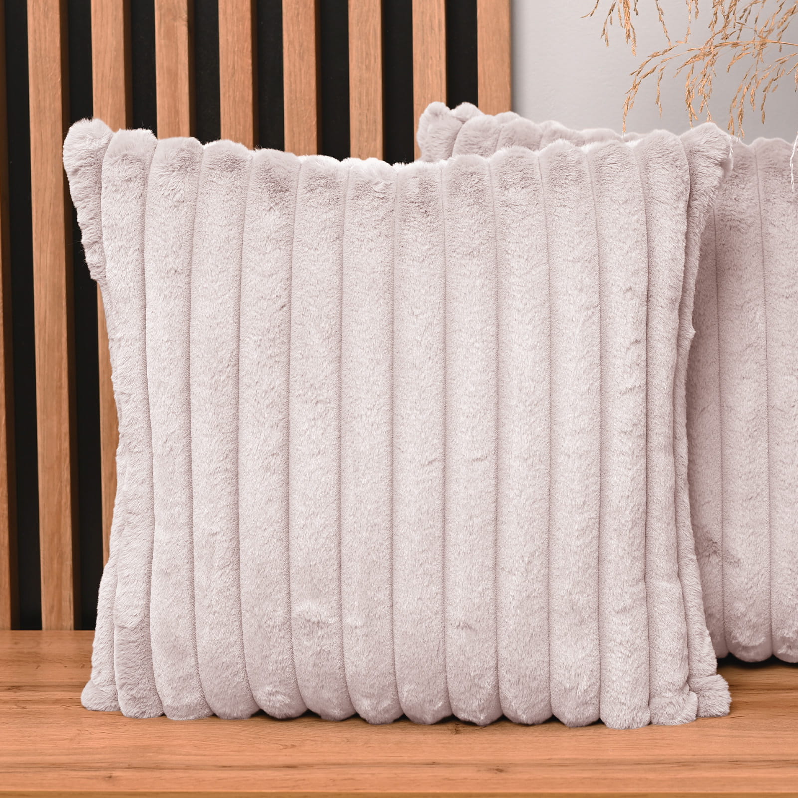 Dekoracyjna poszewka na poduszkę 50x50 cm w kolorze jasnoróżowym z imitacji futra z przeszyciami