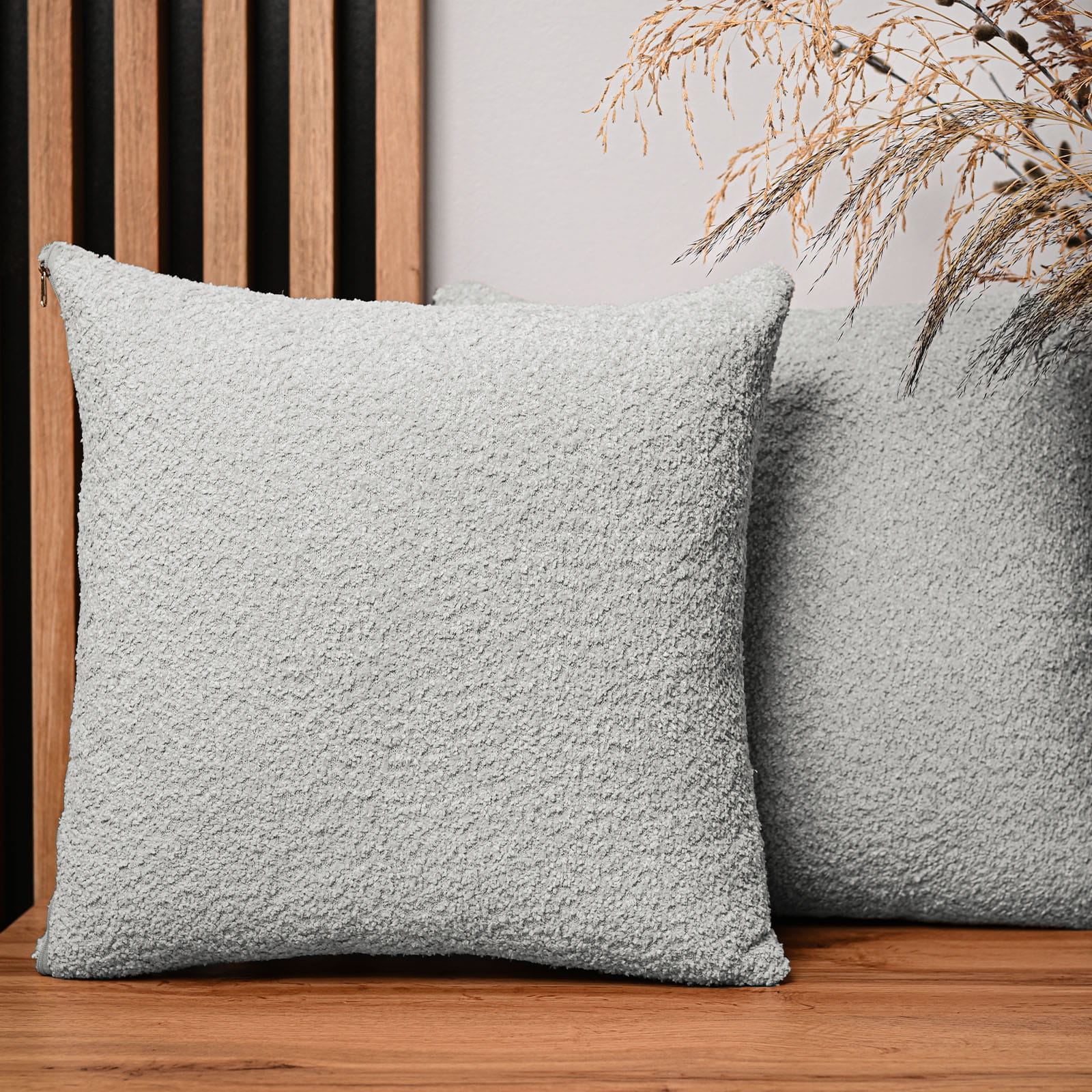 Dekoracyjna poszewka na poduszkę 50x50 cm w kolorze jasnoszarym z tkaniny szenilowej z teksturą