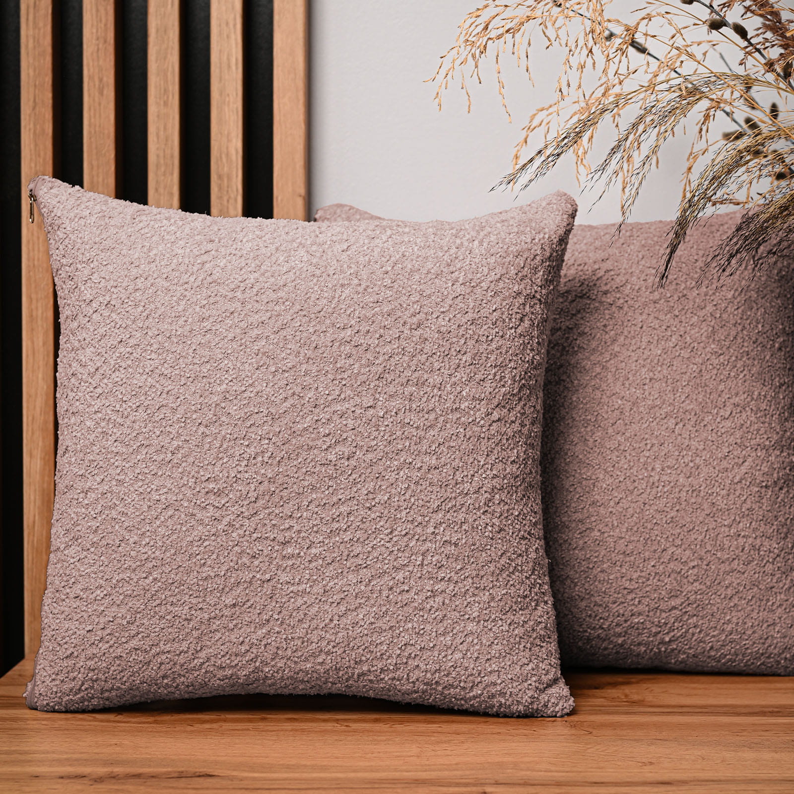 Dekoracyjna poszewka na poduszkę 50x50 cm w kolorze pudrowego różu z tkaniny szenilowej z teksturą