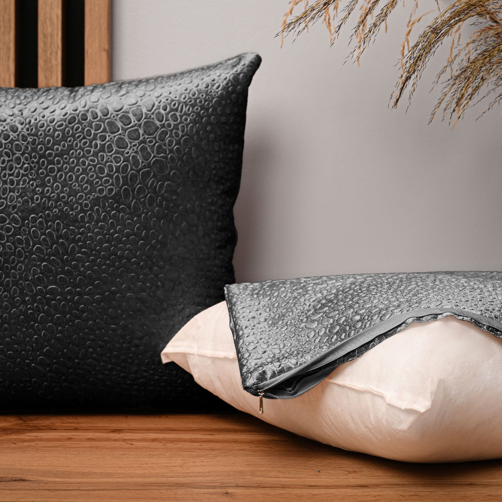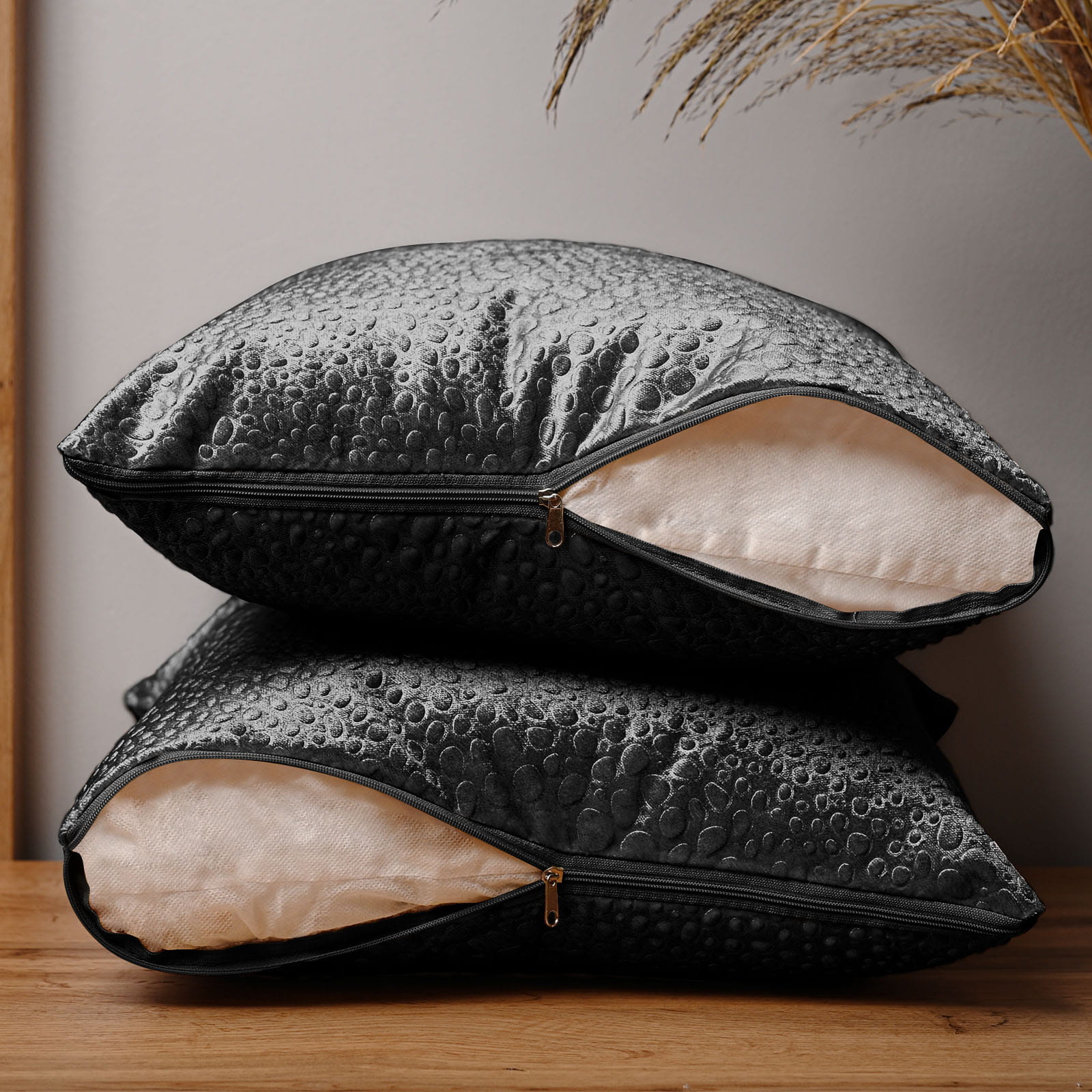 Dekoracyjna poszewka na poduszkę 50x50 cm w kolorze siwym z tkaniny welurowej z teksturą “kropelki"