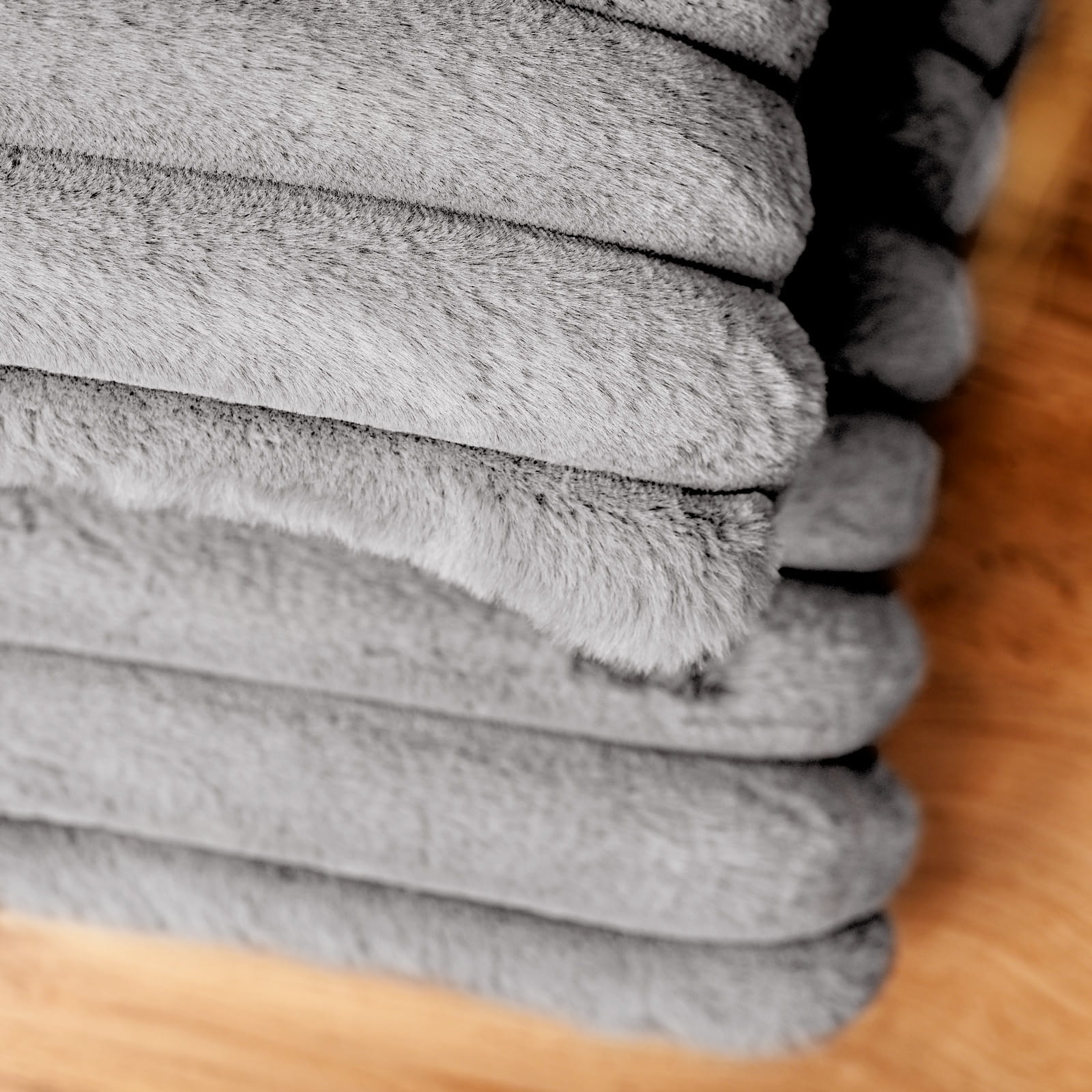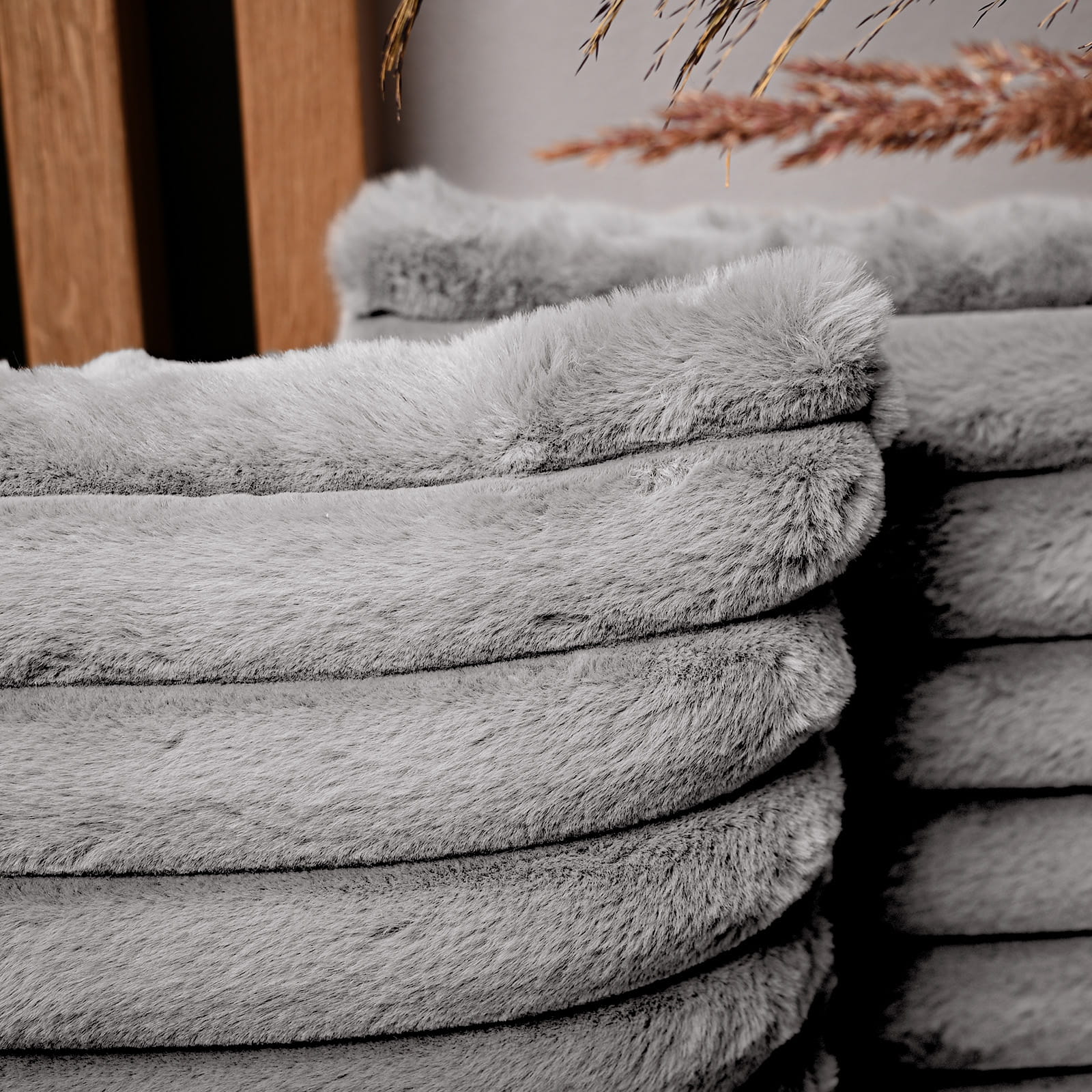 Dekoracyjna poszewka na poduszkę 50x50 cm w kolorze szarym z imitacji futra z przeszyciami