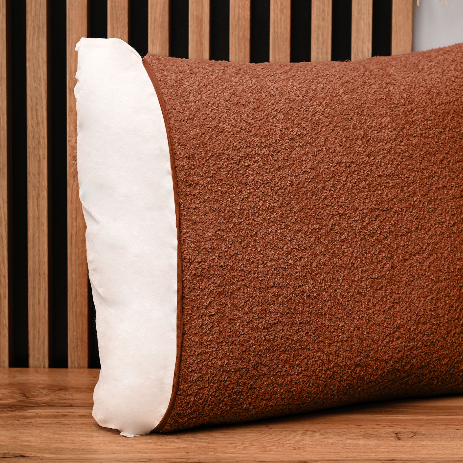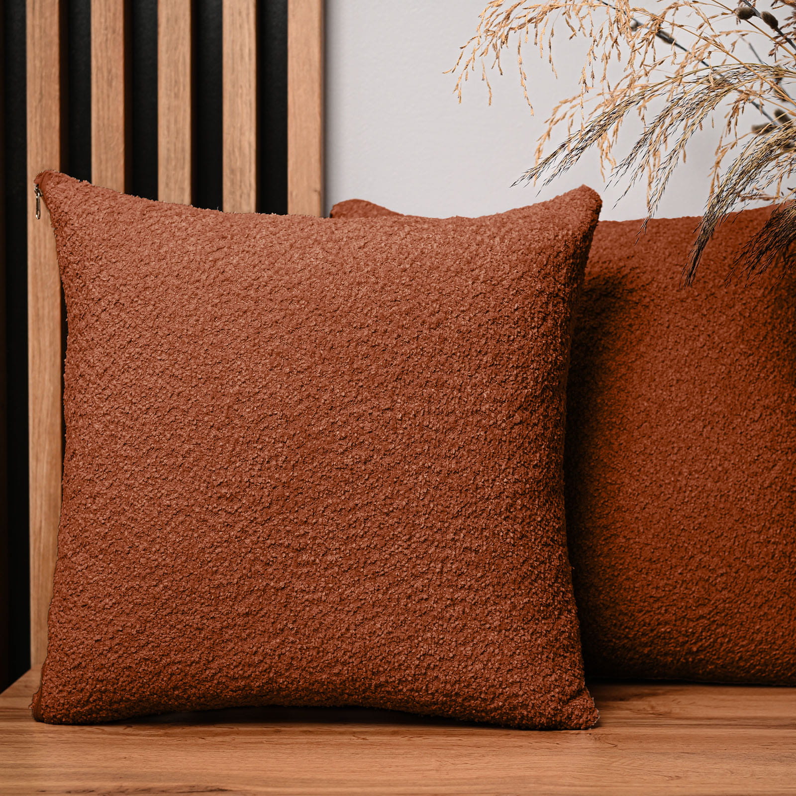 Dekoracyjna poszewka na poduszkę 55x55 cm w kolorze miedzianym z tkaniny szenilowej z teksturą