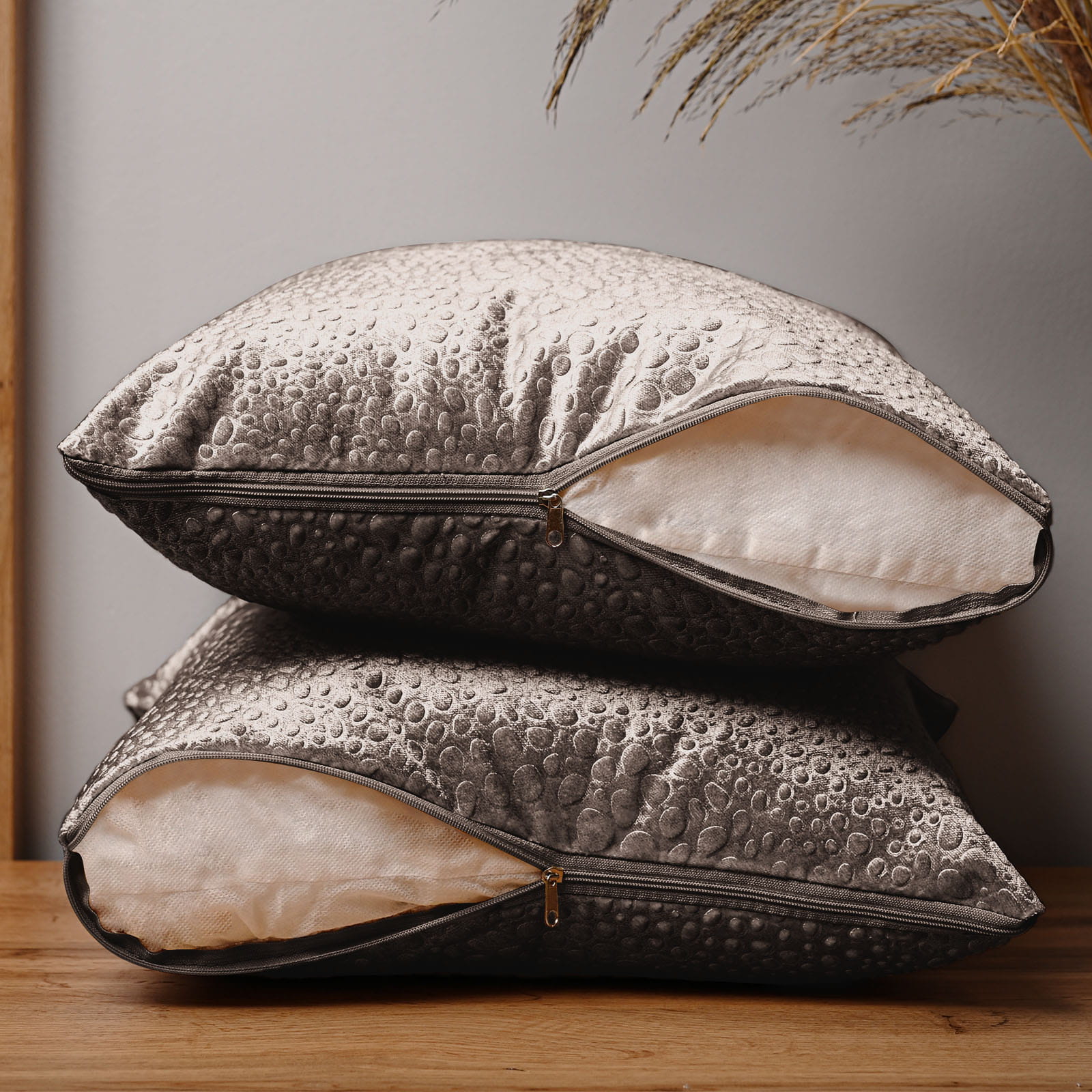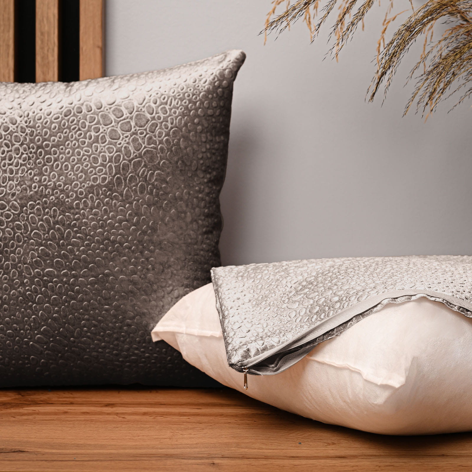 Dekoracyjna poszewka na poduszkę 60x60 cm w kolorze ciemnobeżowym z tkaniny welurowej z teksturą “kropelki"
