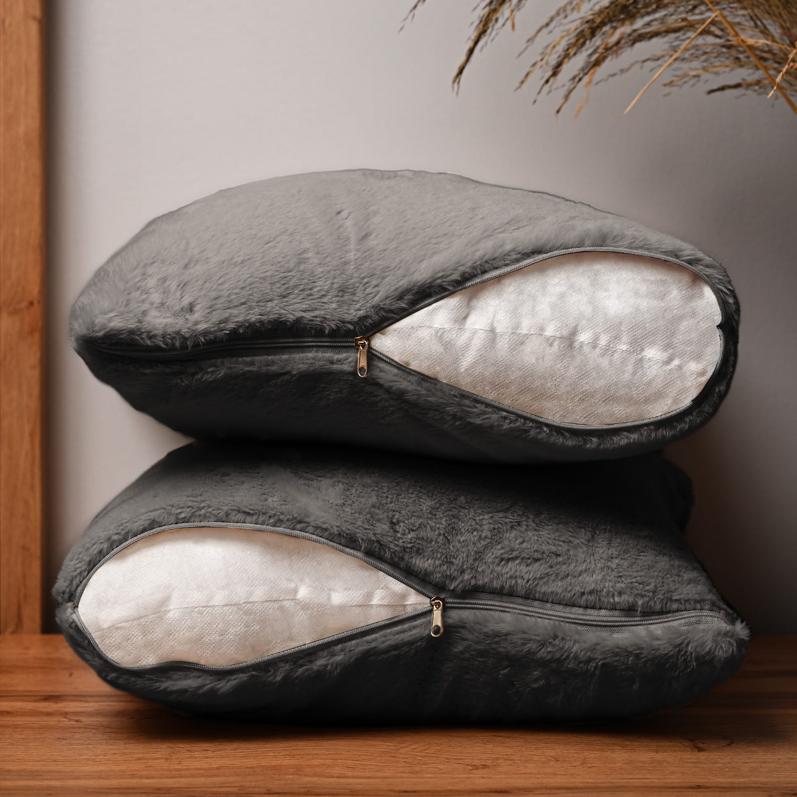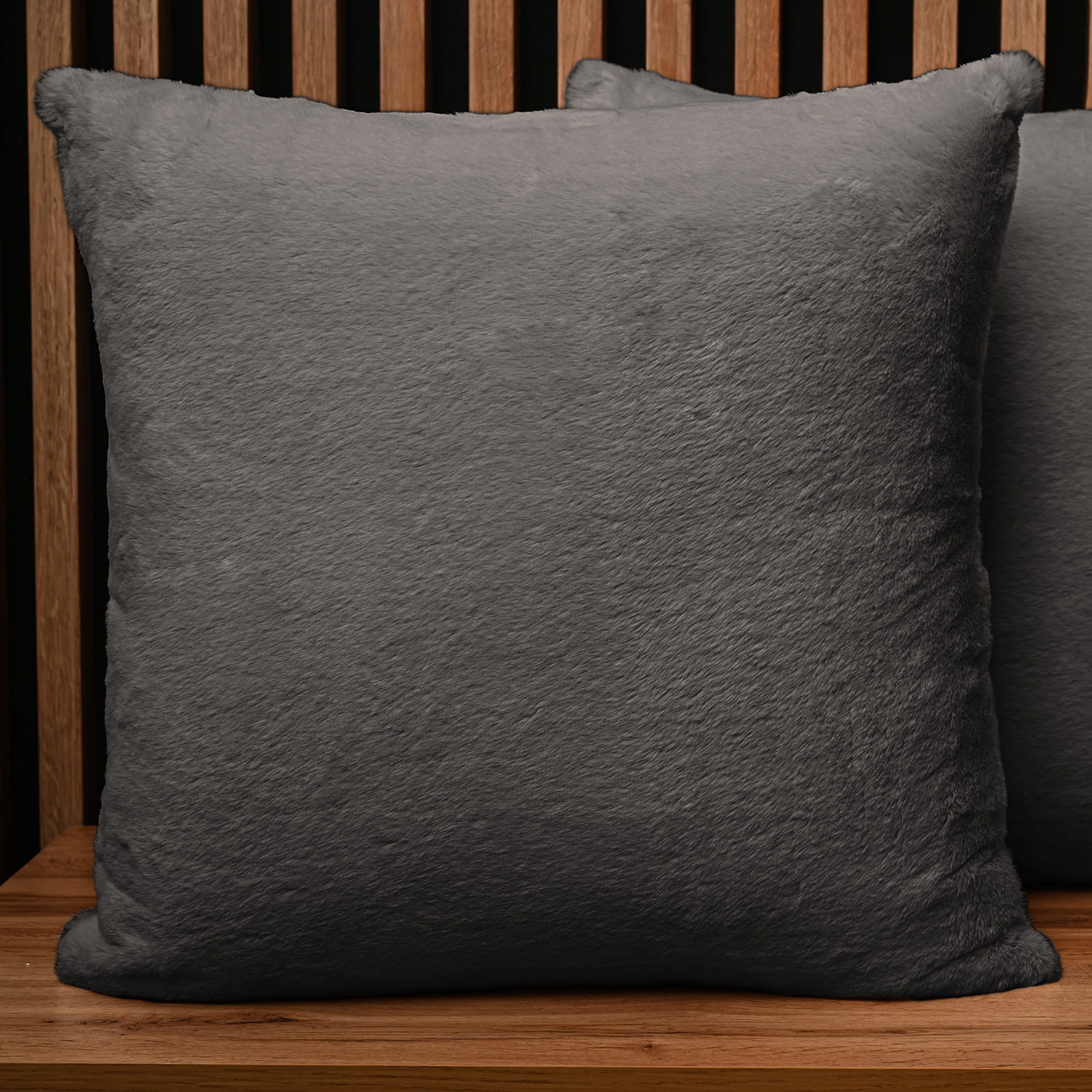 Dekoracyjna poszewka na poduszkę 60x60 cm w kolorze ciemnoszarym z imitacji futra