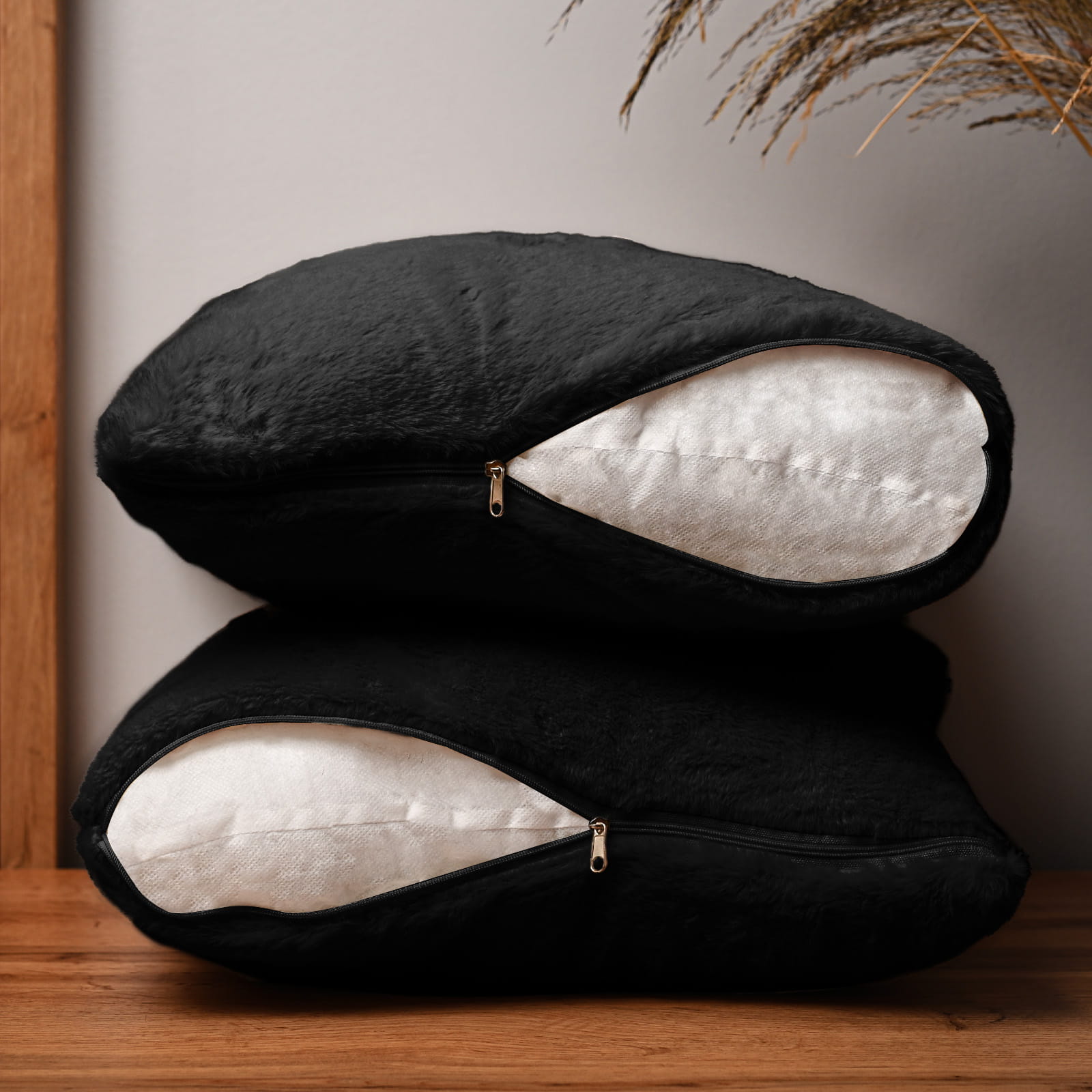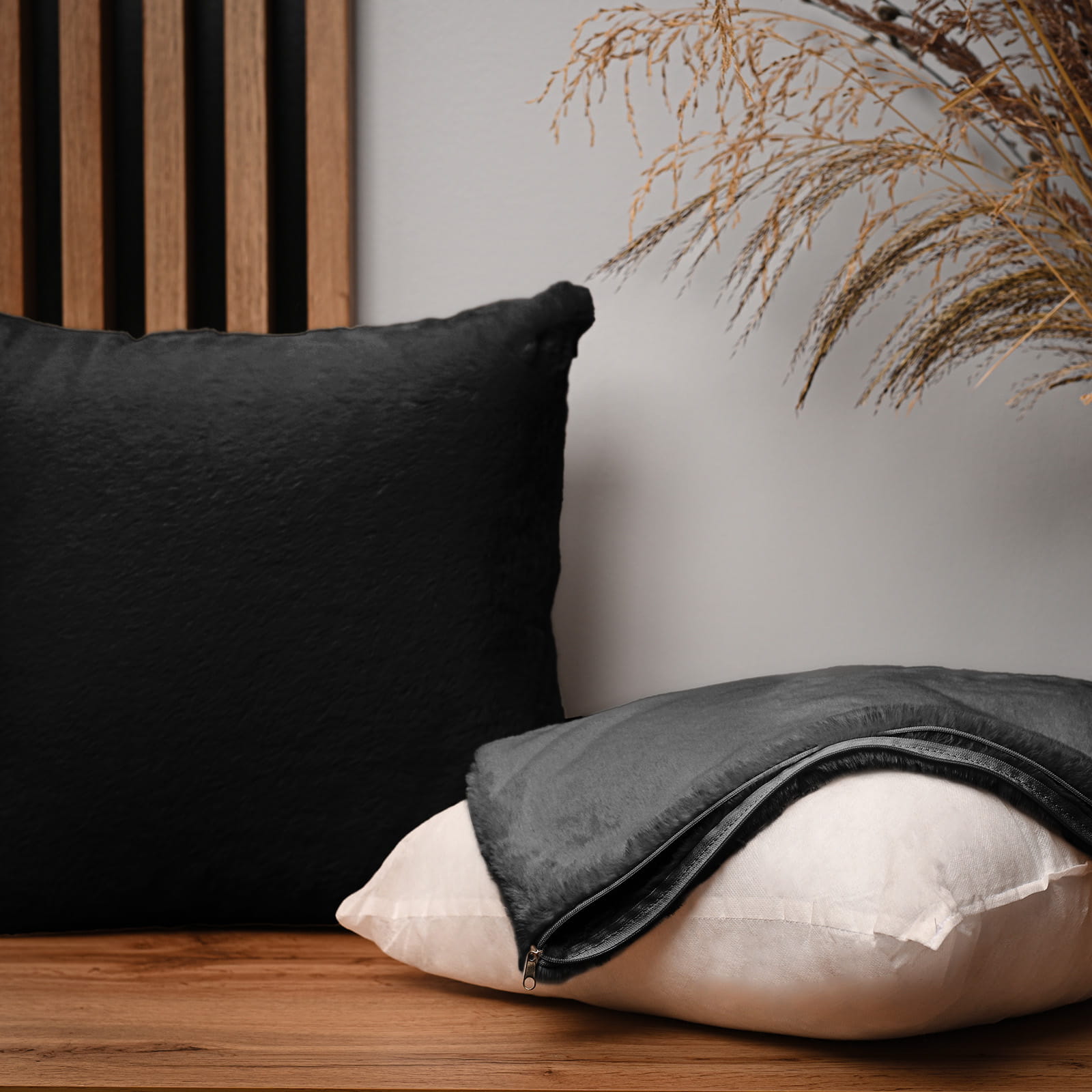 Dekoracyjna poszewka na poduszkę 60x60 cm w kolorze czarnym z imitacji futra