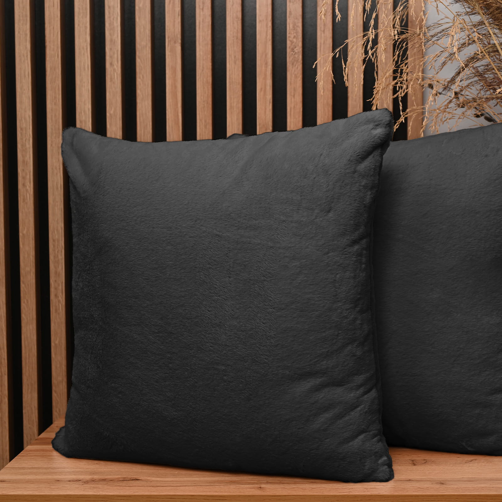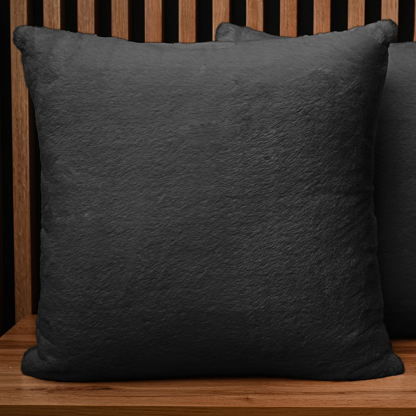 Dekoracyjna poszewka na poduszkę 60x60 cm w kolorze grafitowym z imitacji futra