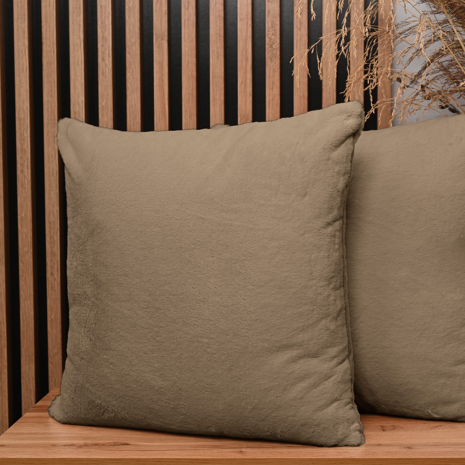 Dekoracyjna poszewka na poduszkę 60x60 cm w kolorze jasnobrązowym z imitacji futra