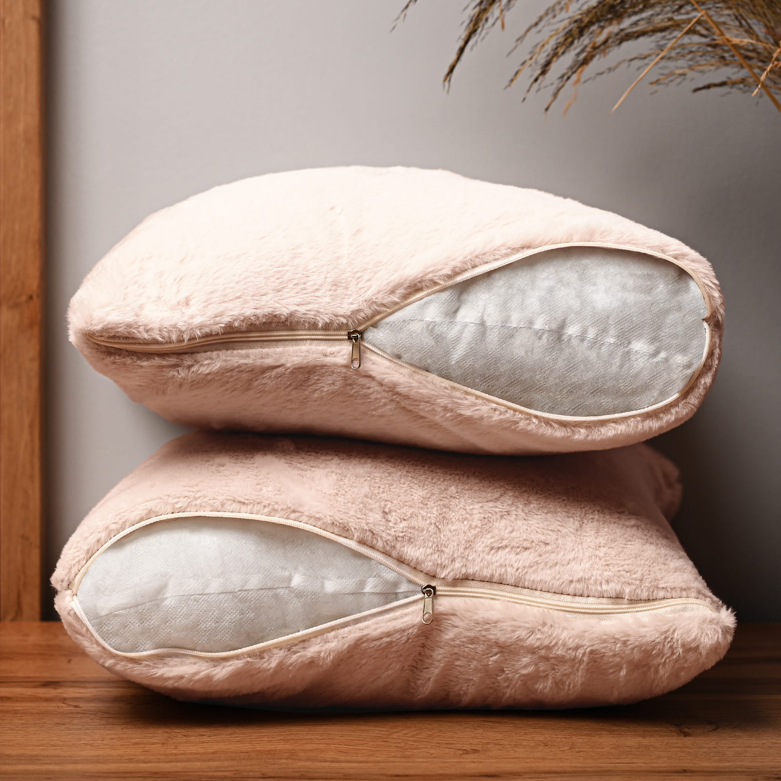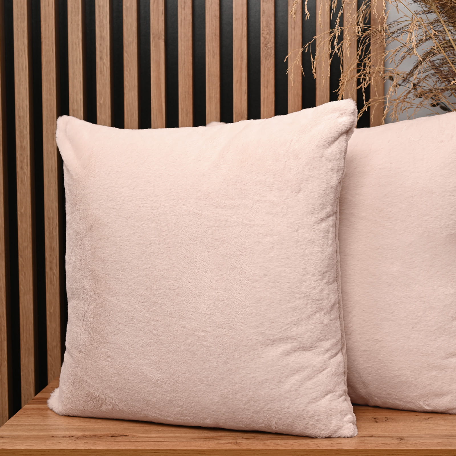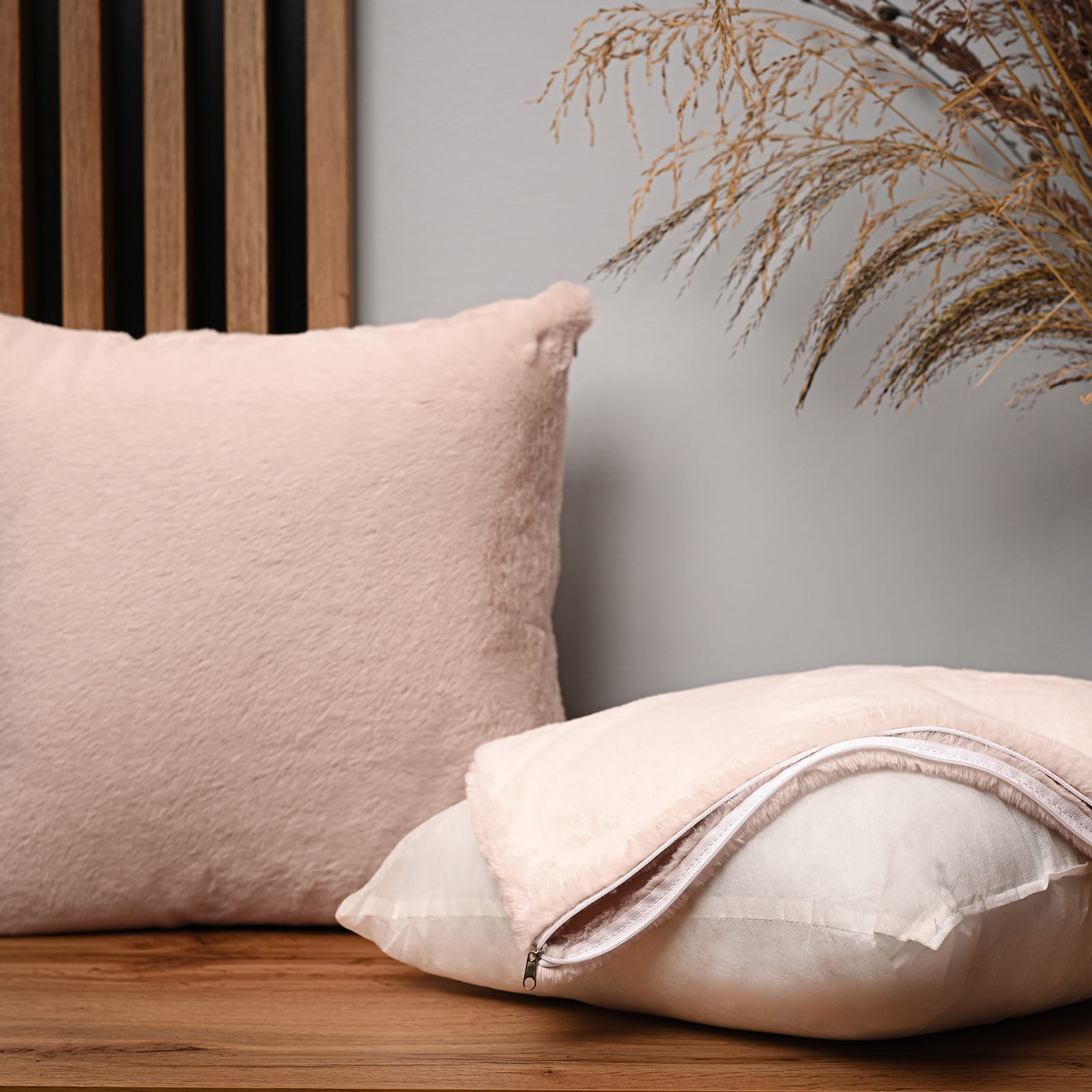 Dekoracyjna poszewka na poduszkę 60x60 cm w kolorze jasnoróżowym z imitacji futra
