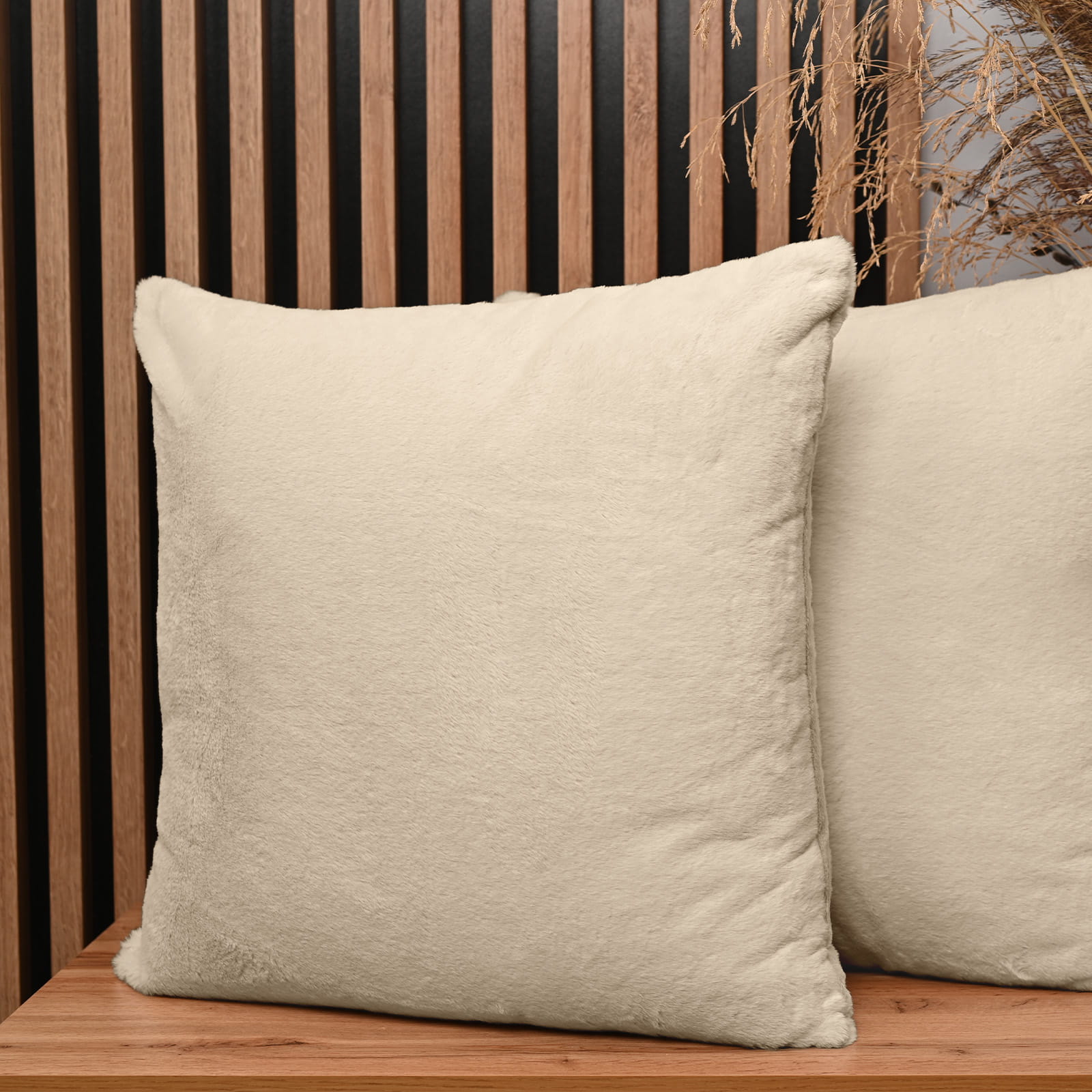 Dekoracyjna poszewka na poduszkę 60x60 cm w kolorze kremowym z imitacji futra