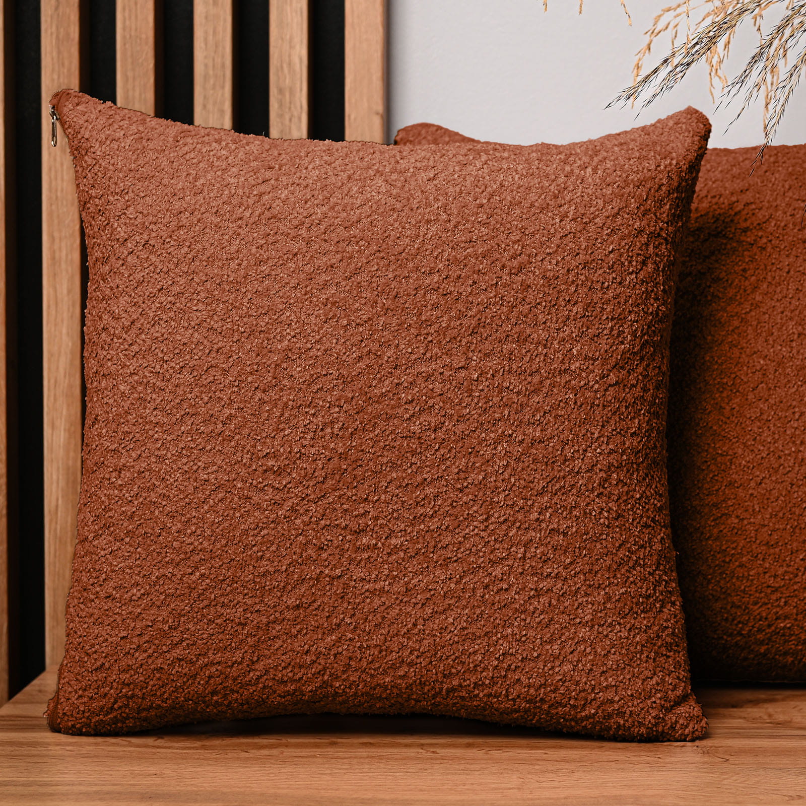 Dekoracyjna poszewka na poduszkę 60x60 cm w kolorze miedzianym z tkaniny szenilowej z teksturą