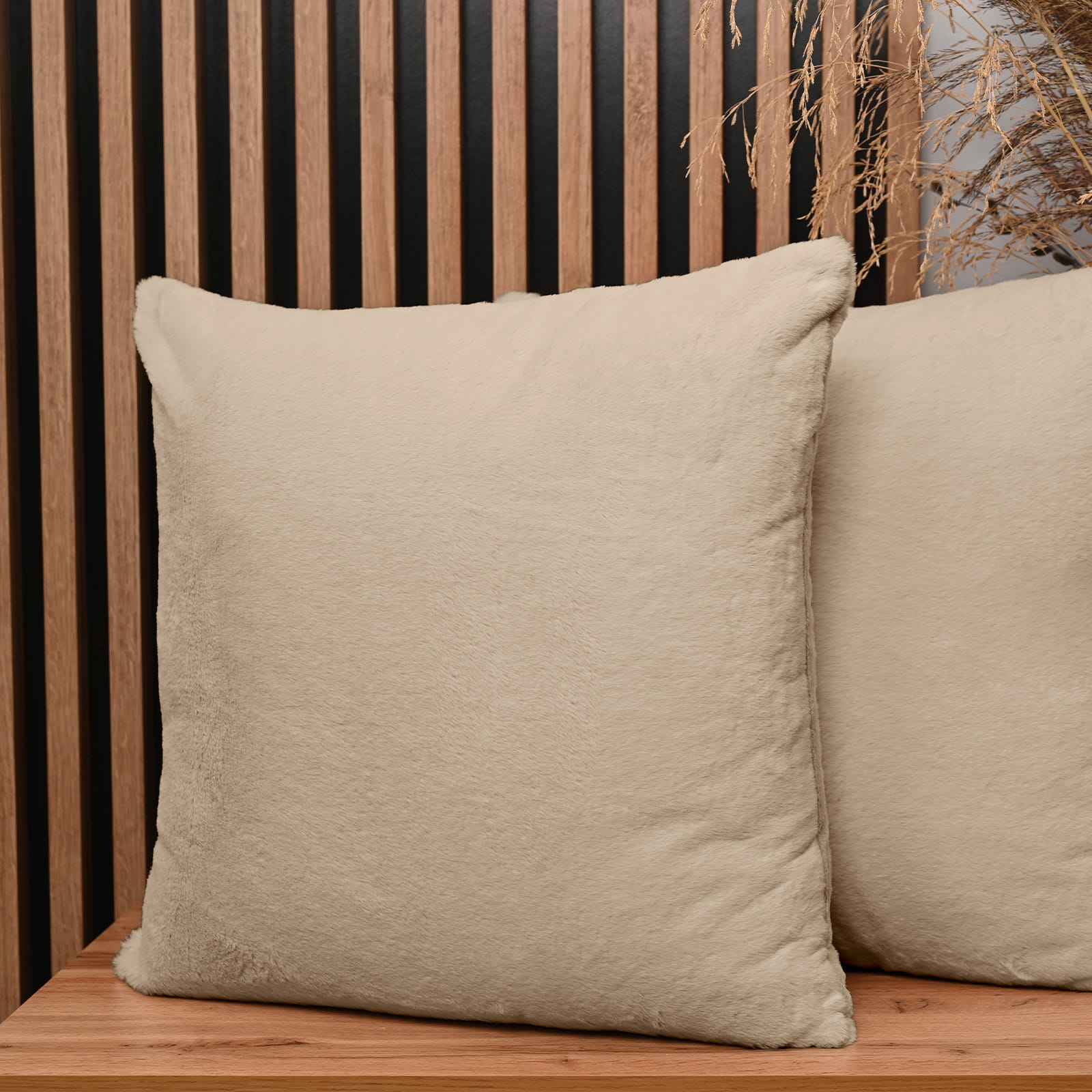Dekoracyjna poszewka na poduszkę 60x60 cm w kolorze piaskowym z imitacji futra