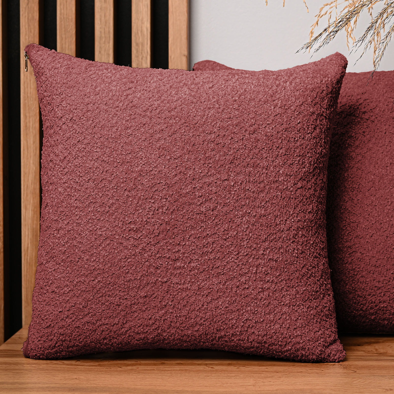 Dekoracyjna poszewka na poduszkę 60x60 cm w kolorze truskawkowym z tkaniny szenilowej z teksturą