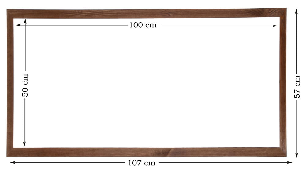 Drewniana rama o wymiarach 50cmx100cm w kolorze brązowym.