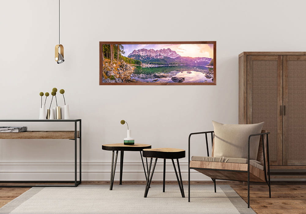 Rama obrazu w 100% naturalna, wykonana z drzewa sosnowego sezonowanego, drewno użyte przy produkcji ramek jest suszone w najwyższej klasy warunkach.