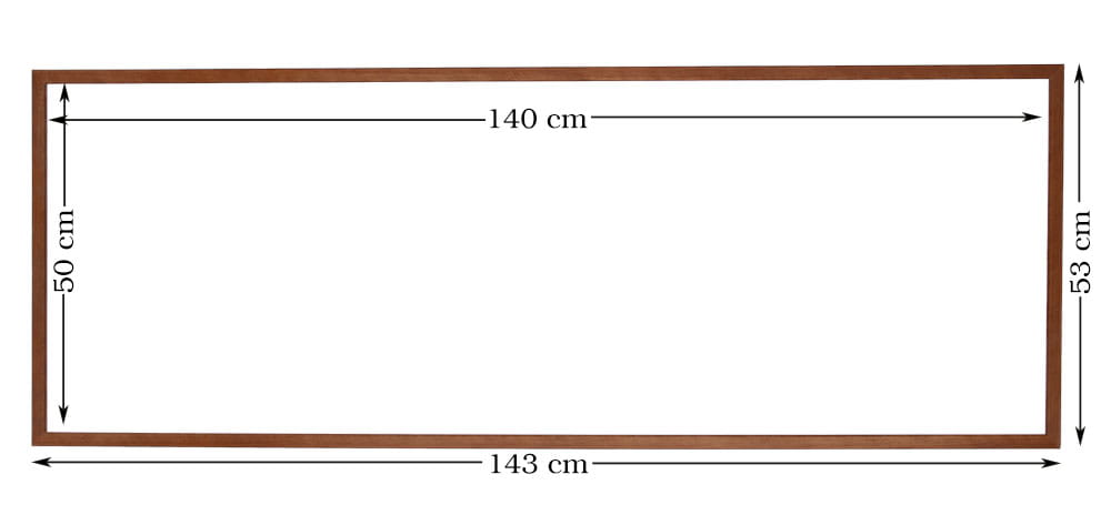 Drewniana rama o wymiarach 50cmx140cm w kolorze brązowym.