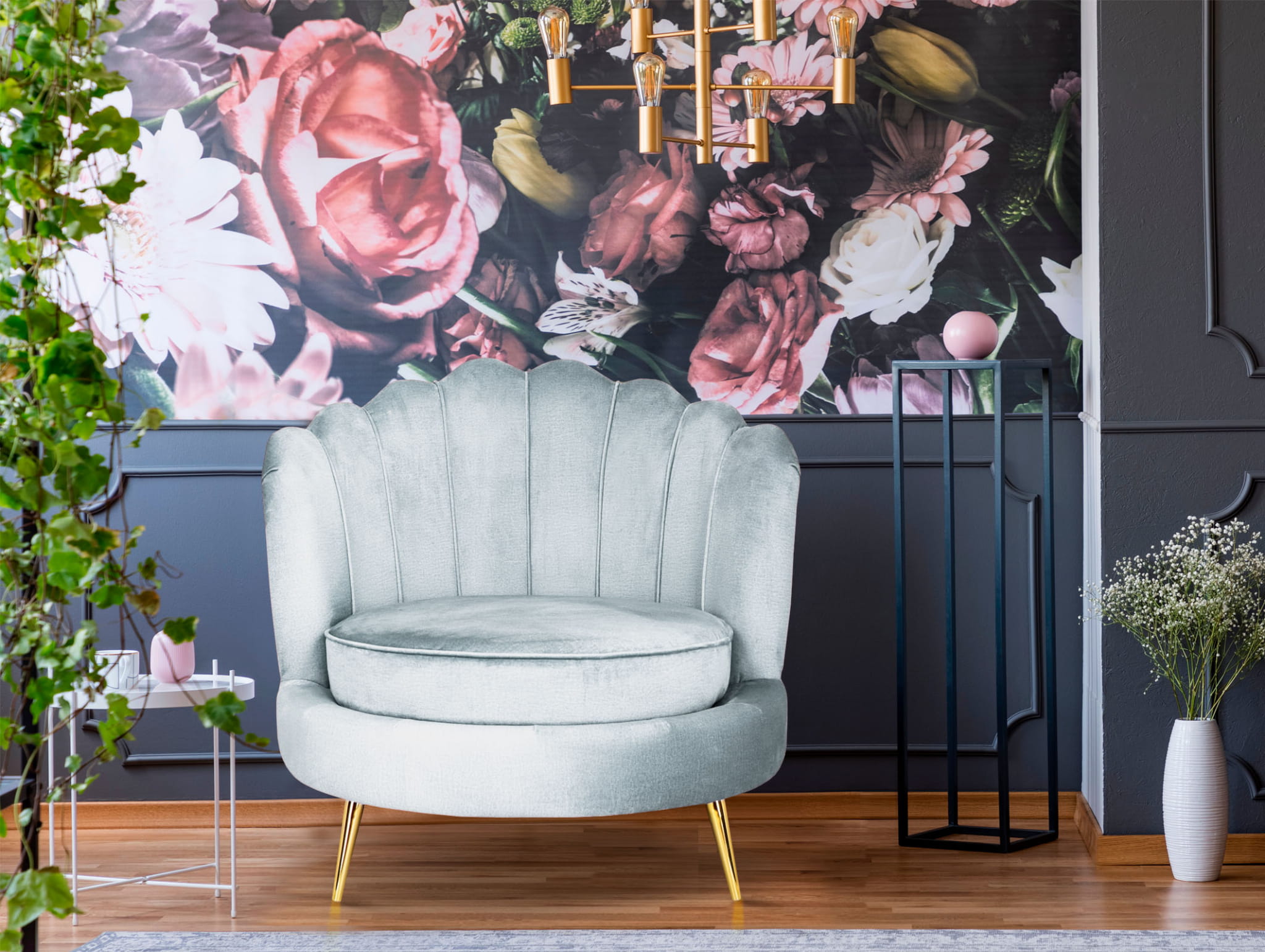 Stylowy fotel Livia Muszelka w kolorze jasnoniebieskim dopasujesz do każdego stylu i wnętrza.