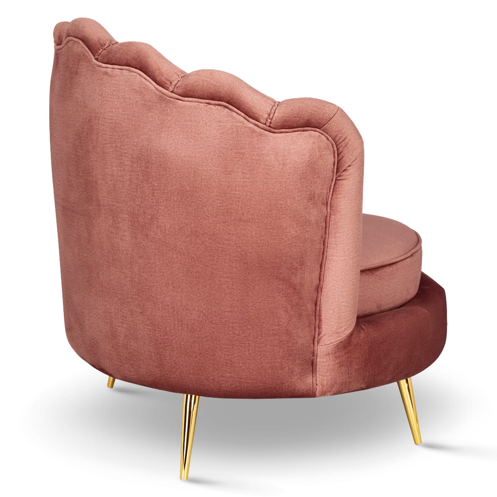 Fotel LIVIA Muszelka w kolorze różowym ze złotymi nogami i pikowanym oparciem