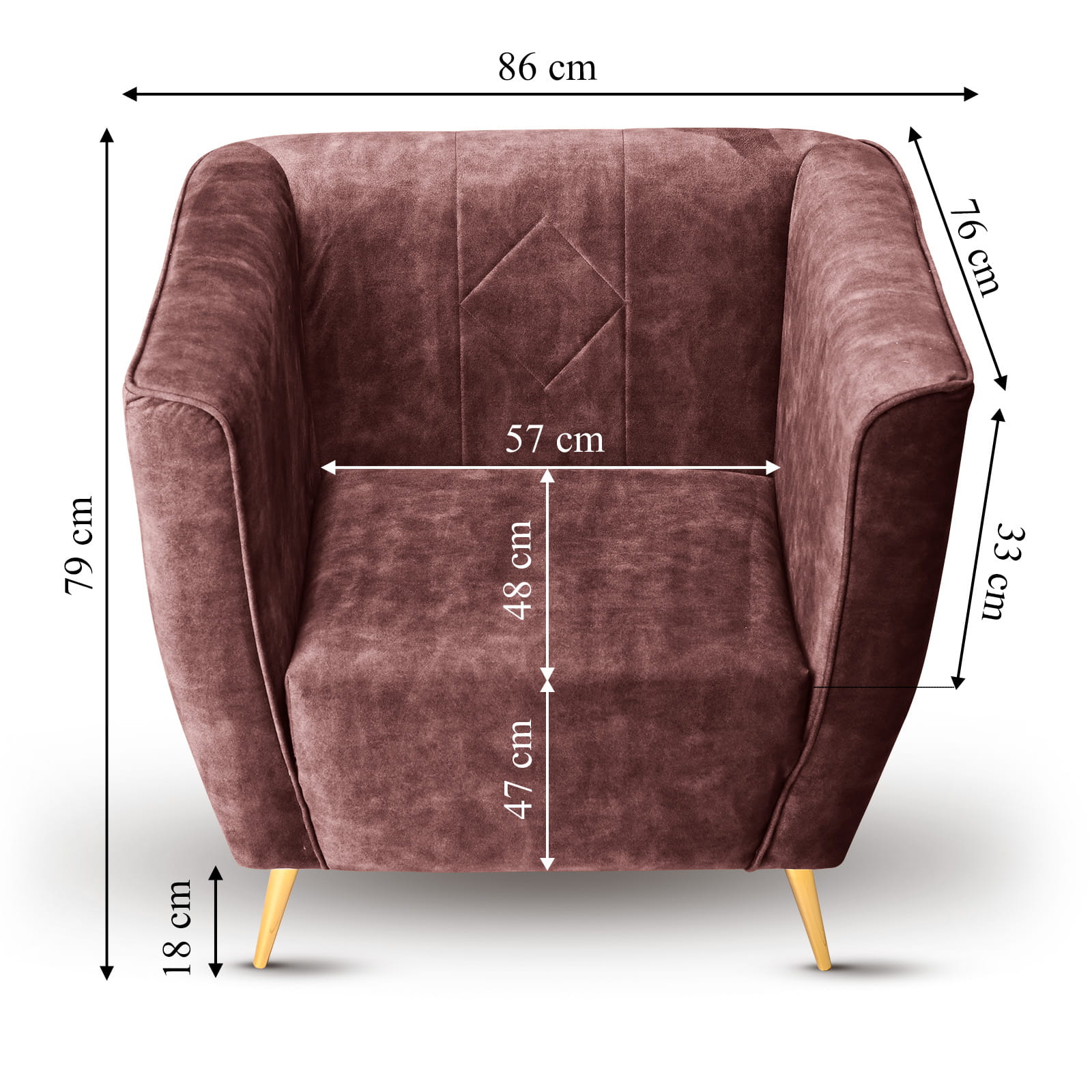 Fotel Lara kupisz samodzielnie lub jako zestaw z piękną sofą ze złotymi nóżkami, by stworzyć luksusowe i eleganckie wnętrze, które oczaruje wszystkich.