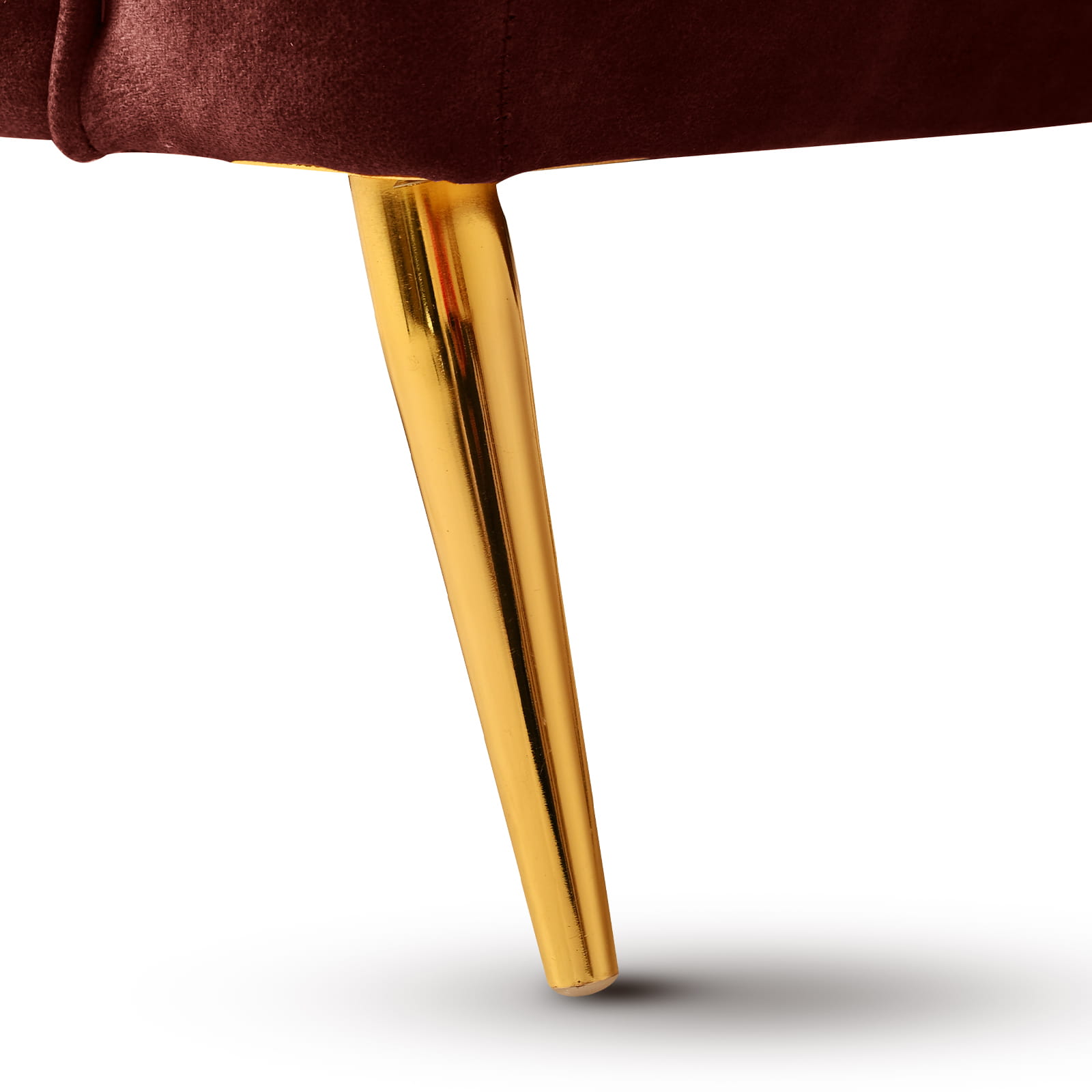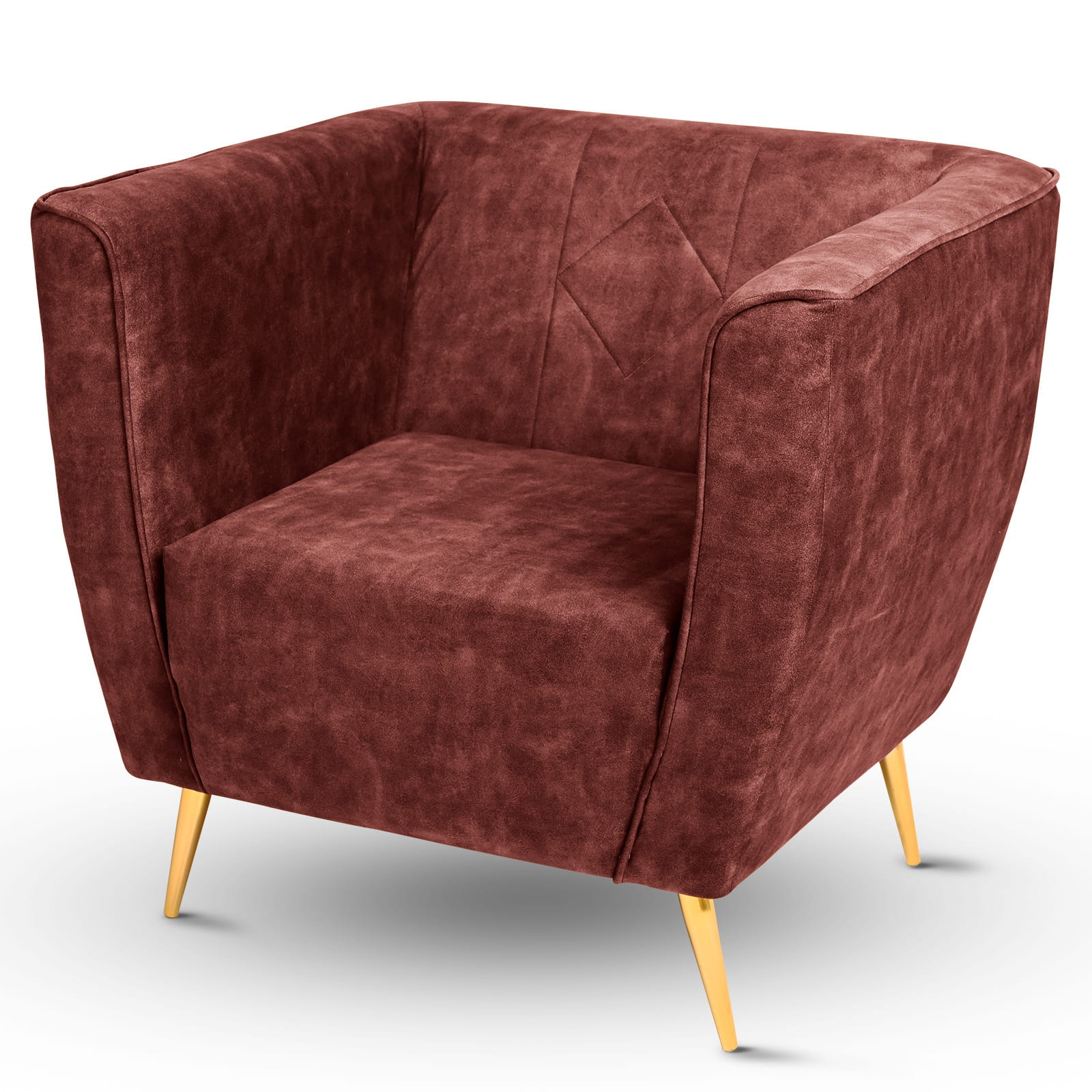 Fotel Lara z welurowej tkaniny w kolorze czerwonym z przeszyciami i złotymi nogami