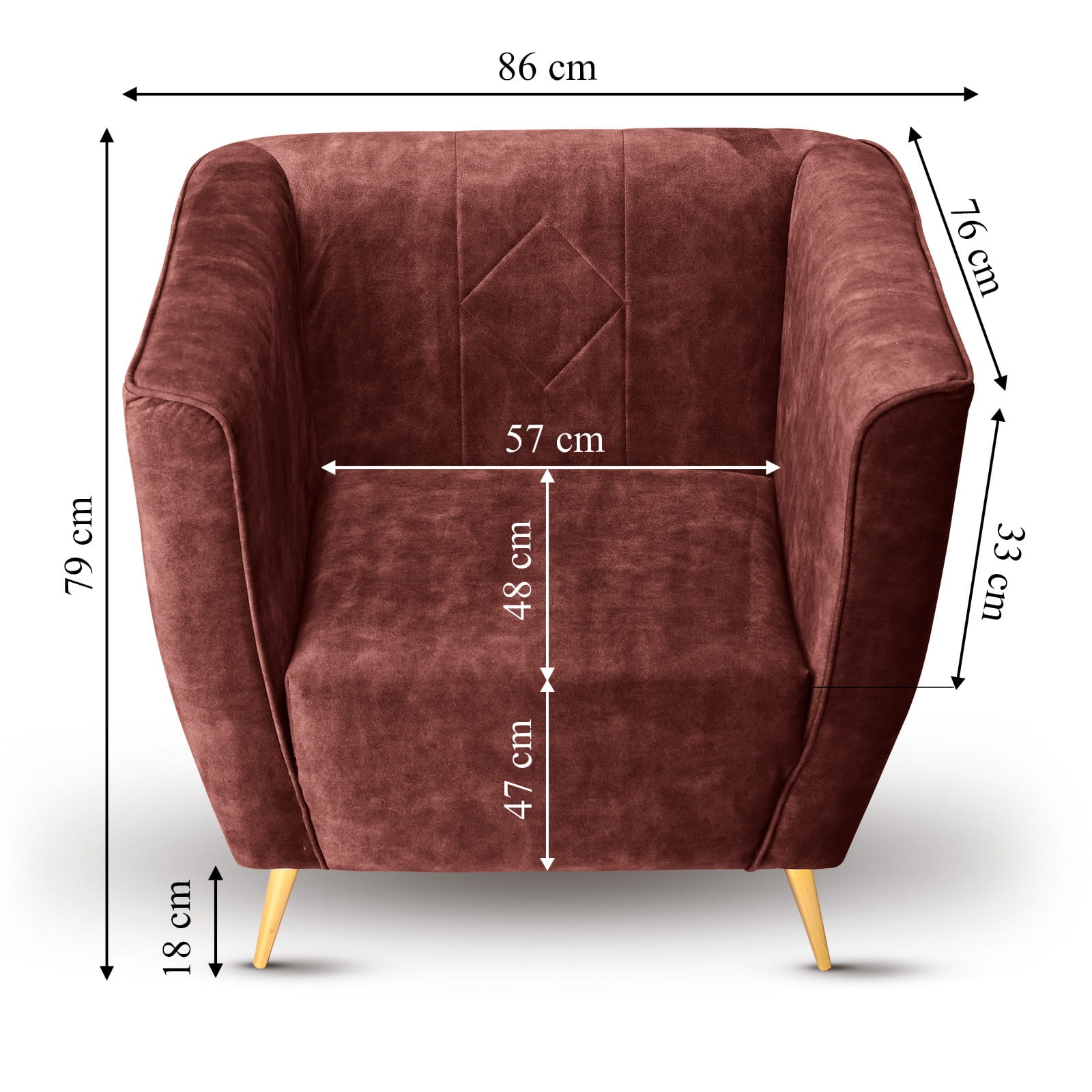 Fotel Lara kupisz samodzielnie lub jako zestaw z piękną sofą ze złotymi nóżkami, by stworzyć luksusowe i eleganckie wnętrze, które oczaruje wszystkich.