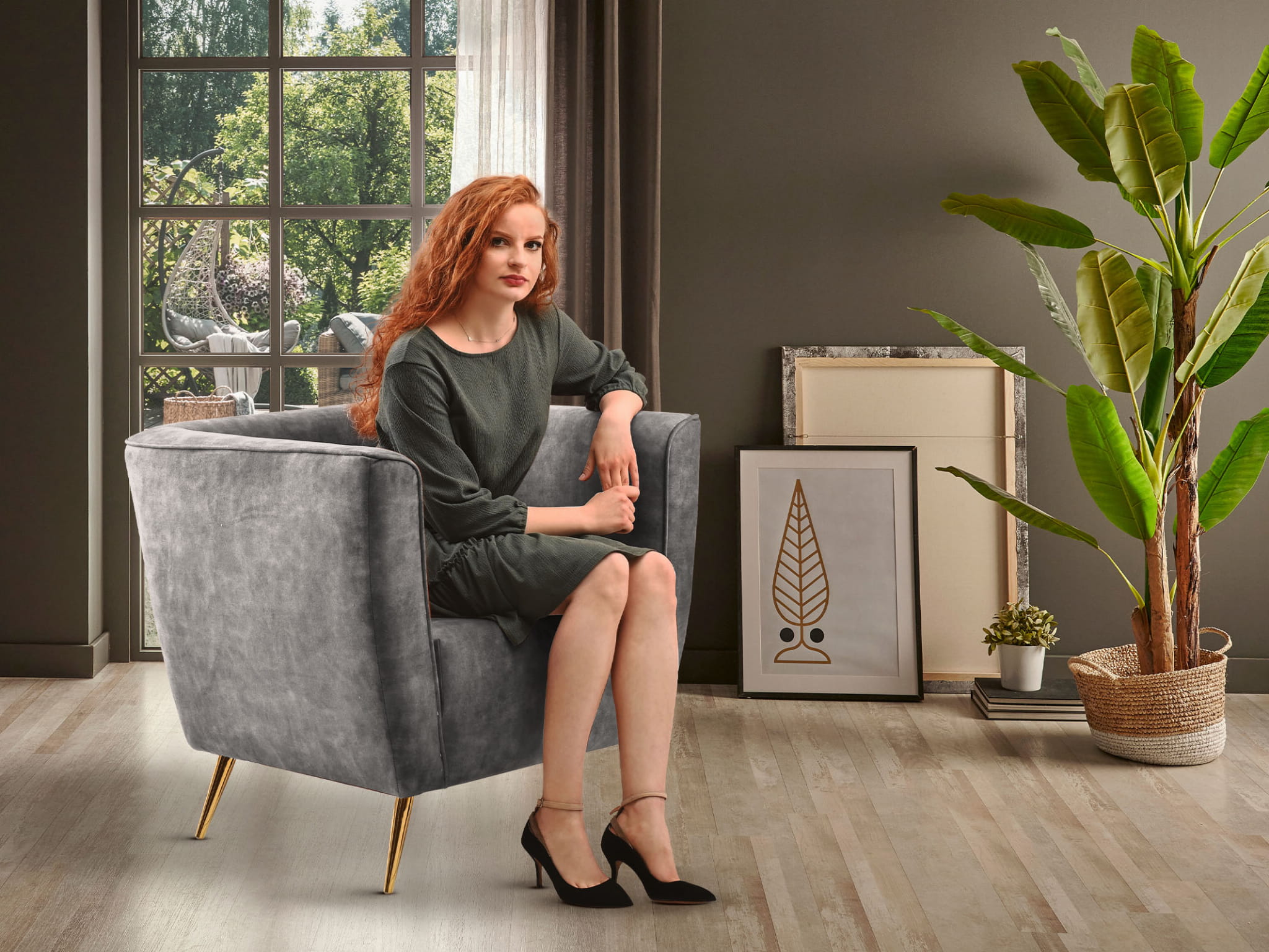 Fotel Lara kupisz samodzielnie lub jako zestaw z piękną sofą ze złotymi nóżkami, by stworzyć luksusowe i eleganckie wnętrze, które oczaruje wszystkich.