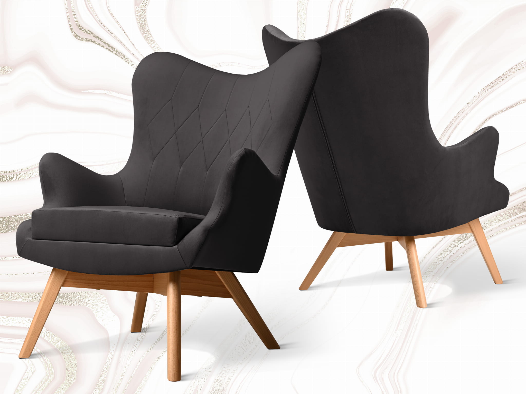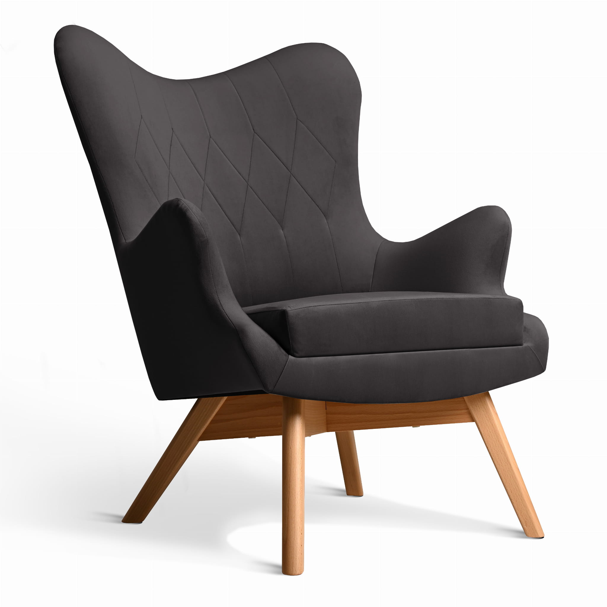 Fotel uszak Bergen w kolorze ciemnoszarym z drewnianymi nóżkami w stylu skandynawskim