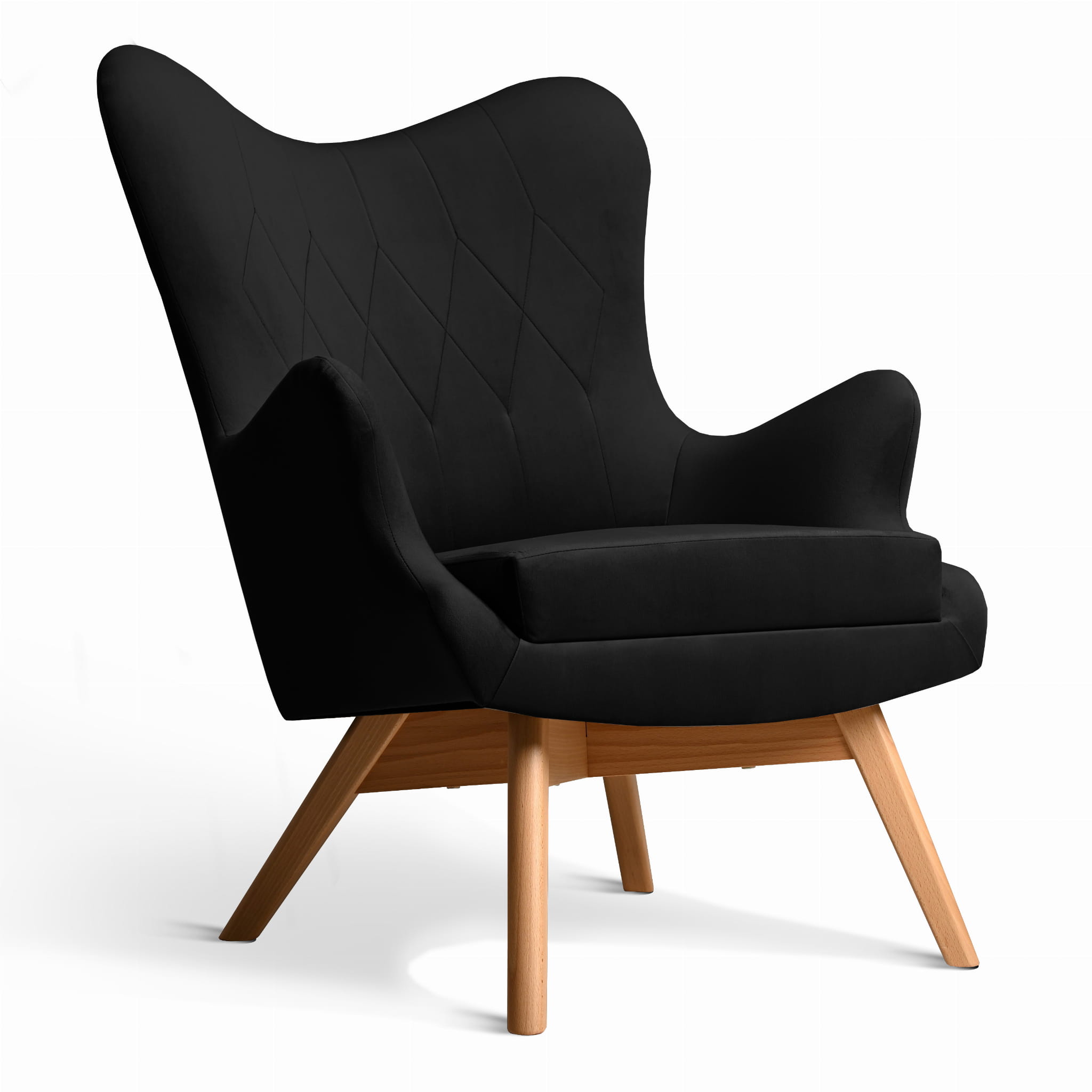 Fotel uszak Bergen w kolorze czarnym z drewnianymi nóżkami w stylu skandynawskim