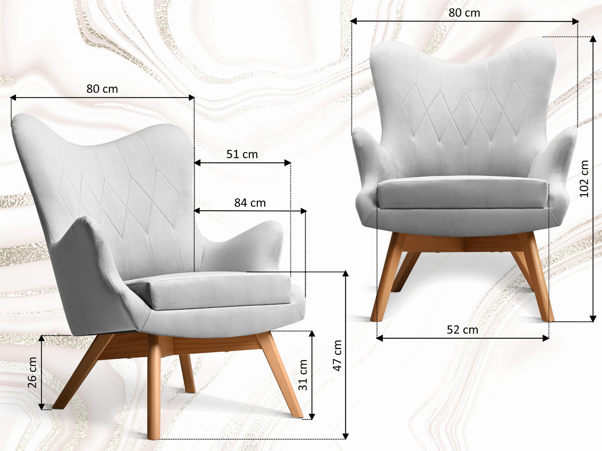 - Wysokość nóżki z przodu – 31 cm