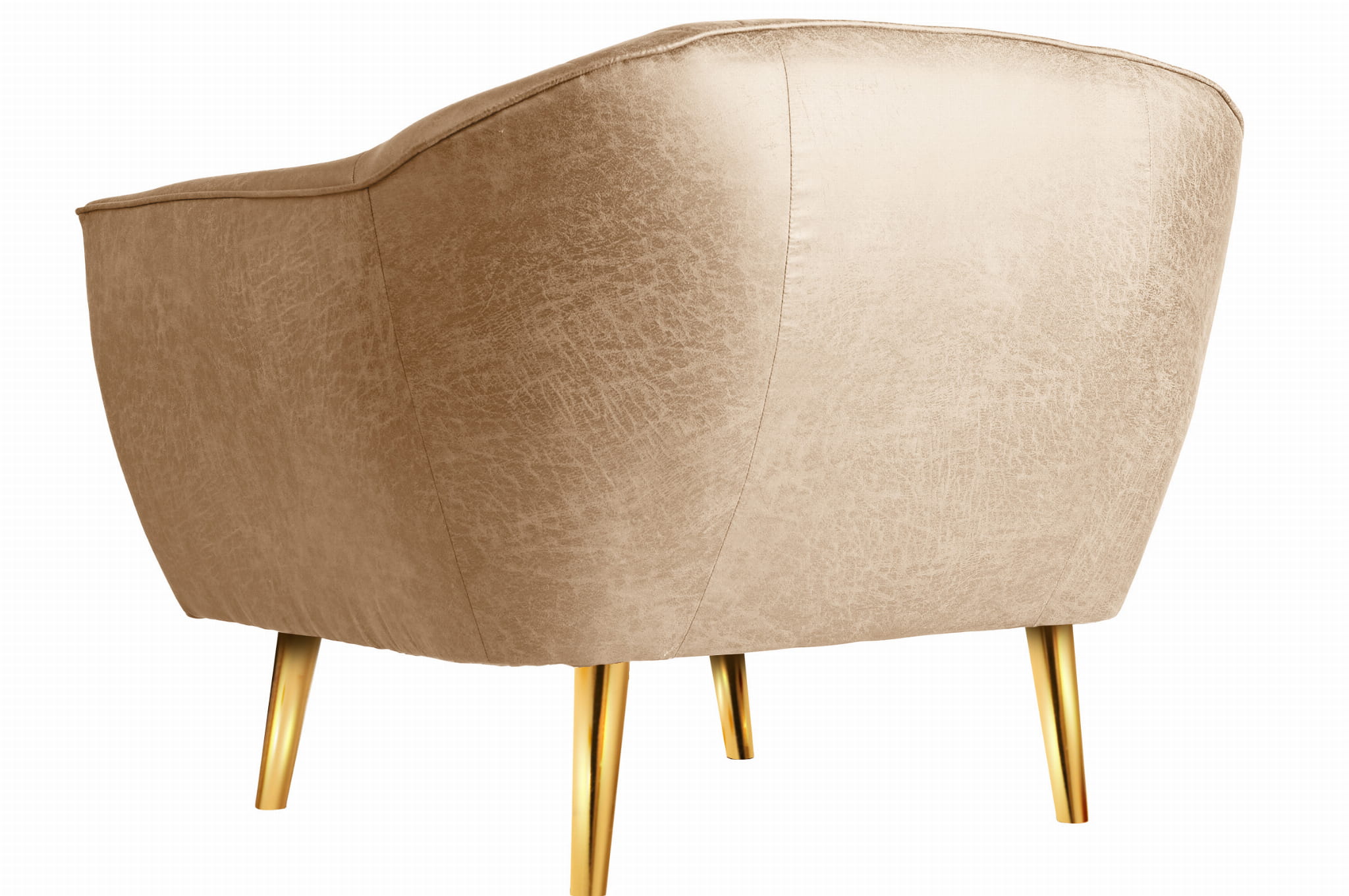 Fotel z ekoskóry ze złotymi nóżkami Rosa w kolorze beżowym z subtelnymi przeszyciami