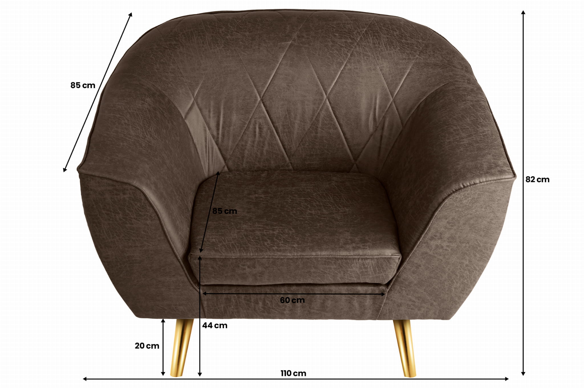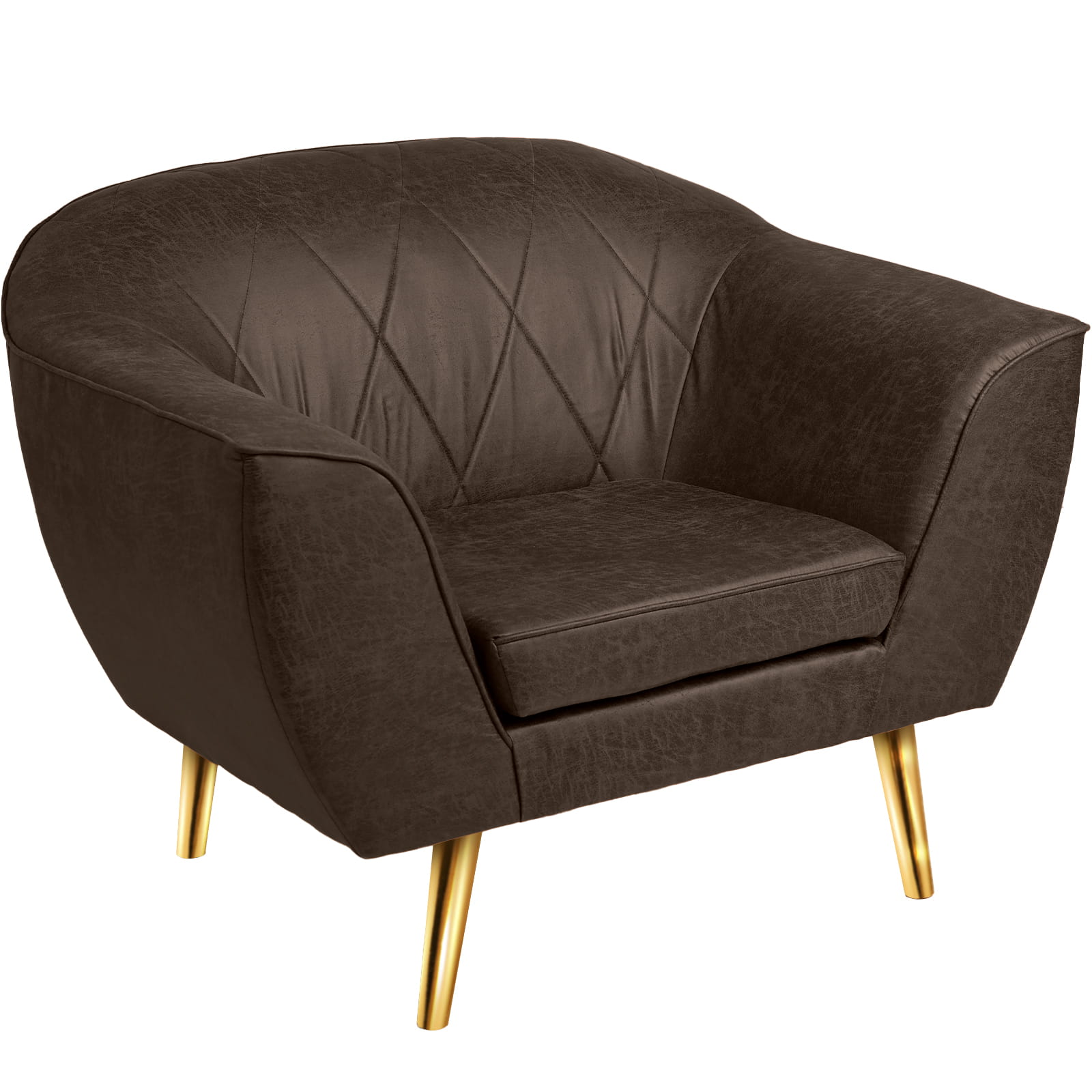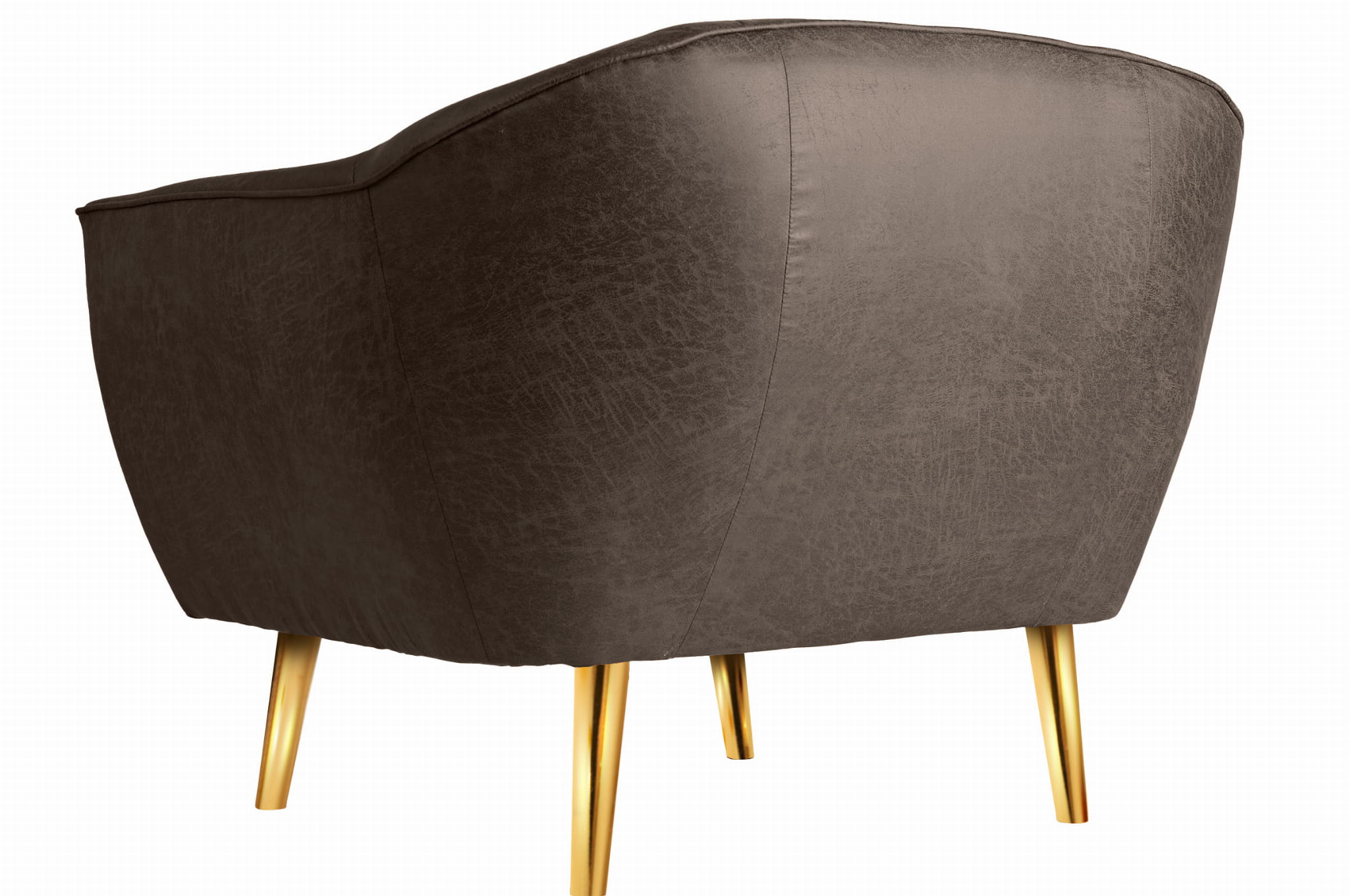 Fotel z ekoskóry ze złotymi nóżkami Rosa w kolorze ciemnobrązowym z subtelnymi przeszyciami