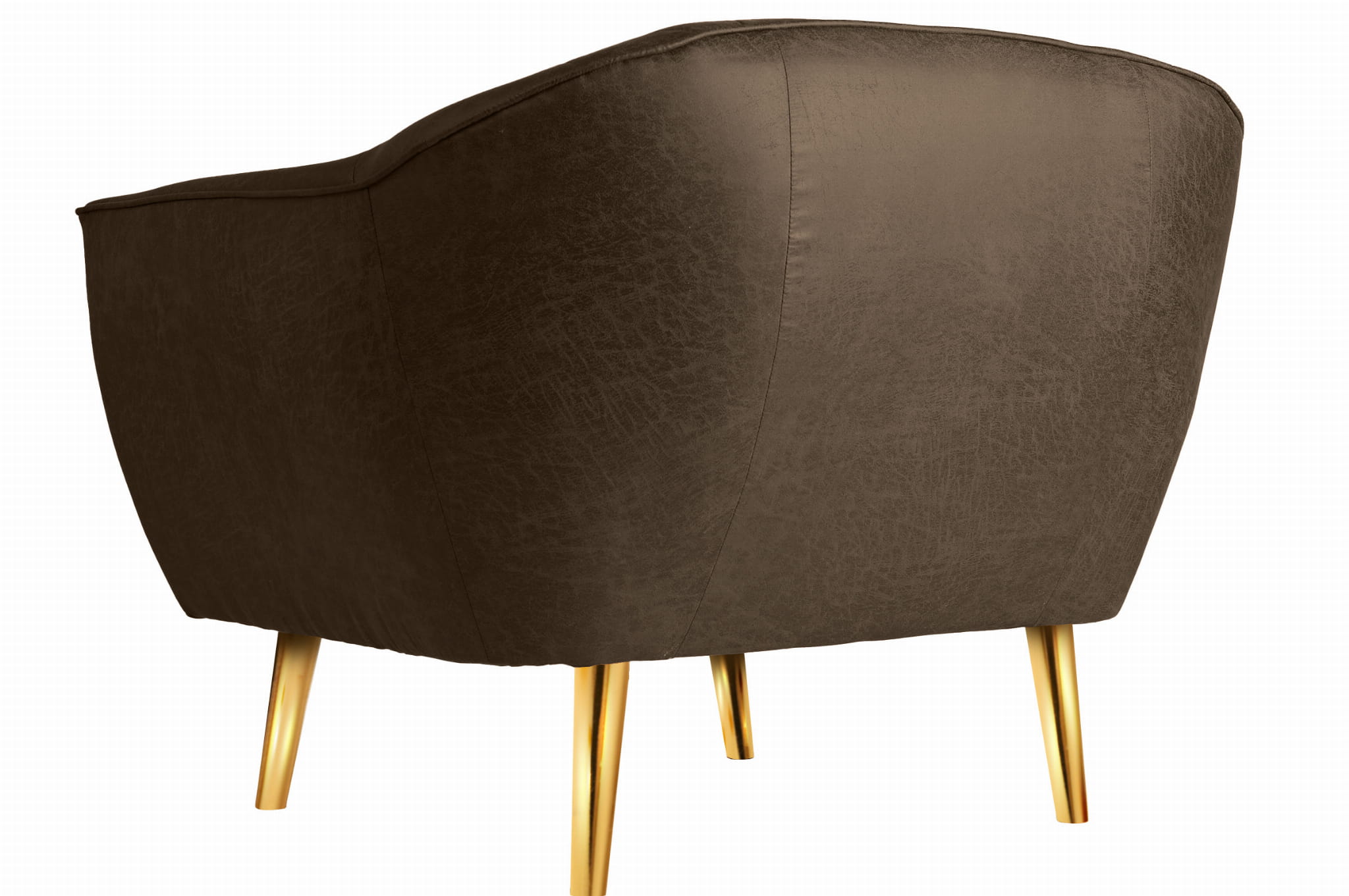 Fotel z ekoskóry ze złotymi nóżkami Rosa w kolorze czekoladowym z subtelnymi przeszyciami