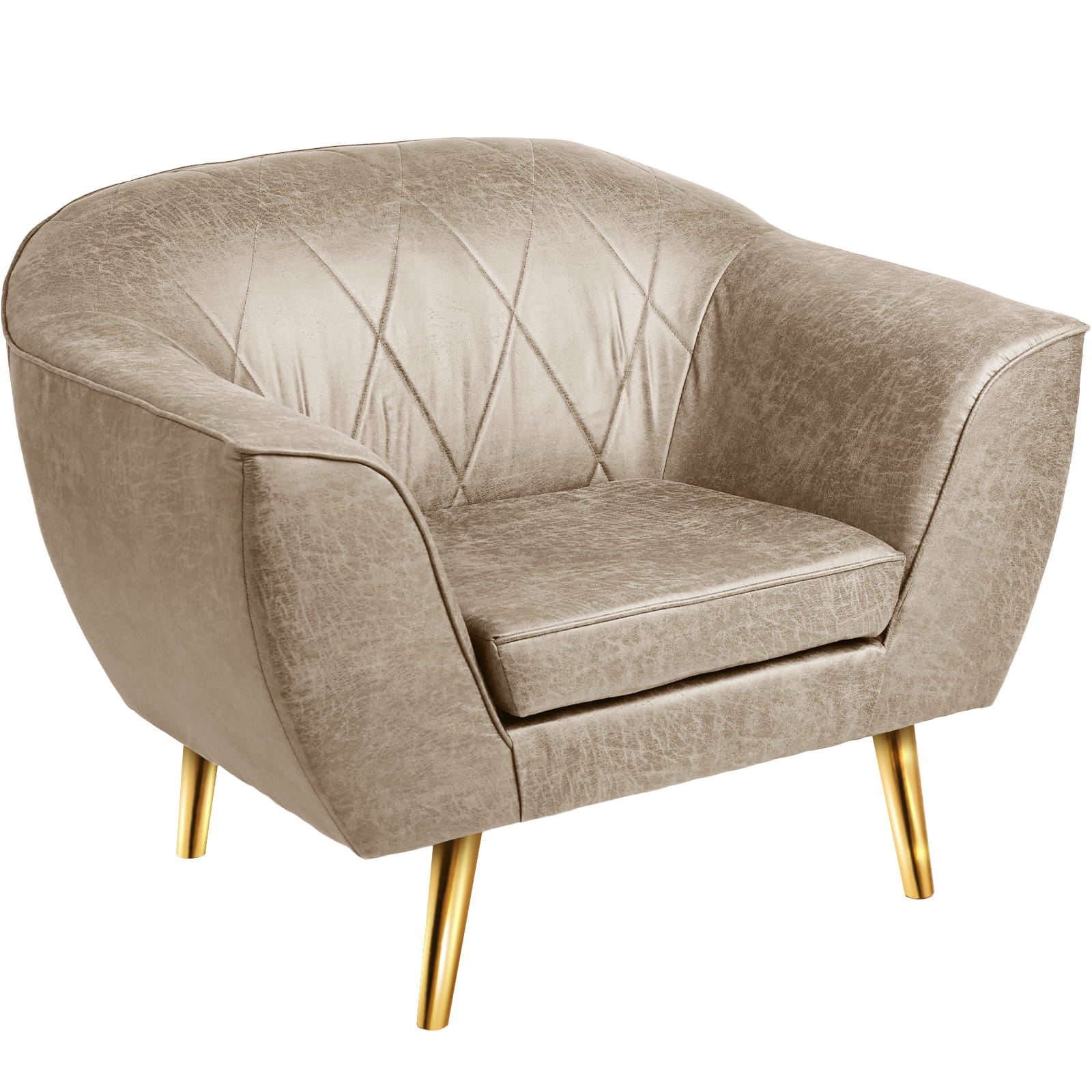 Fotel z imitacji skóry o eleganckich przeszyciach i złotych nóżkach to idealny mebel, który doda luksusowego akcentu każdemu wnętrzu.