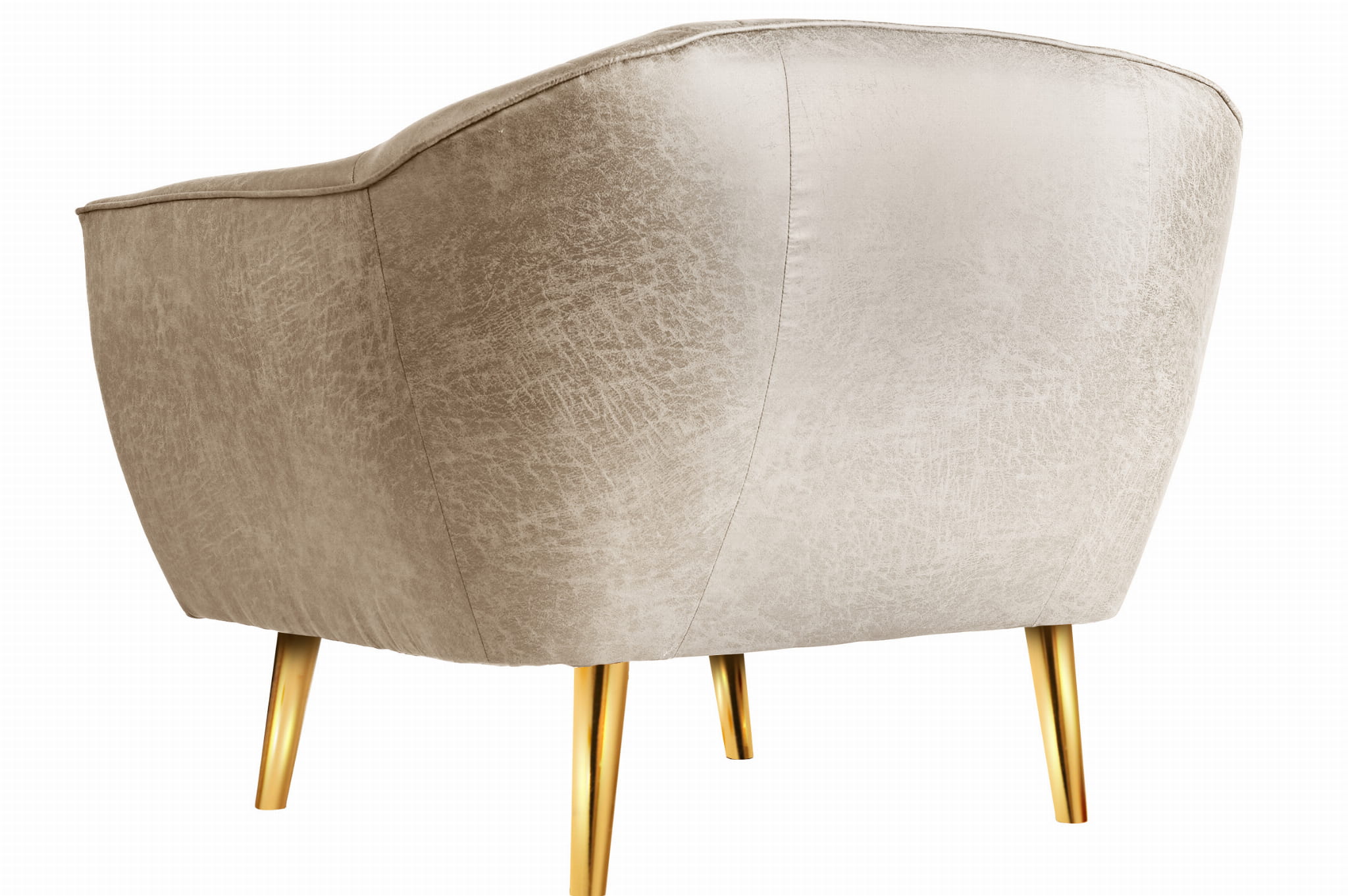 Fotel z ekoskóry ze złotymi nóżkami Rosa w kolorze jasnobeżowym z subtelnymi przeszyciami