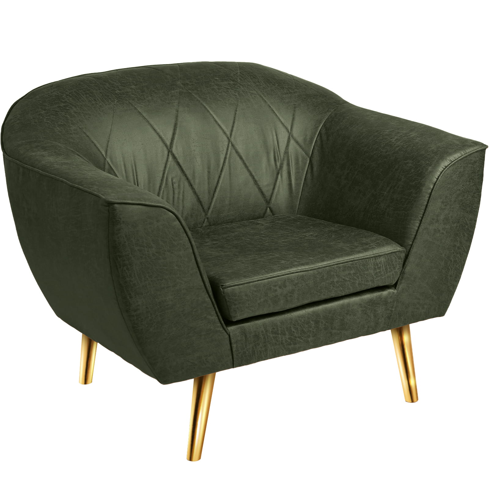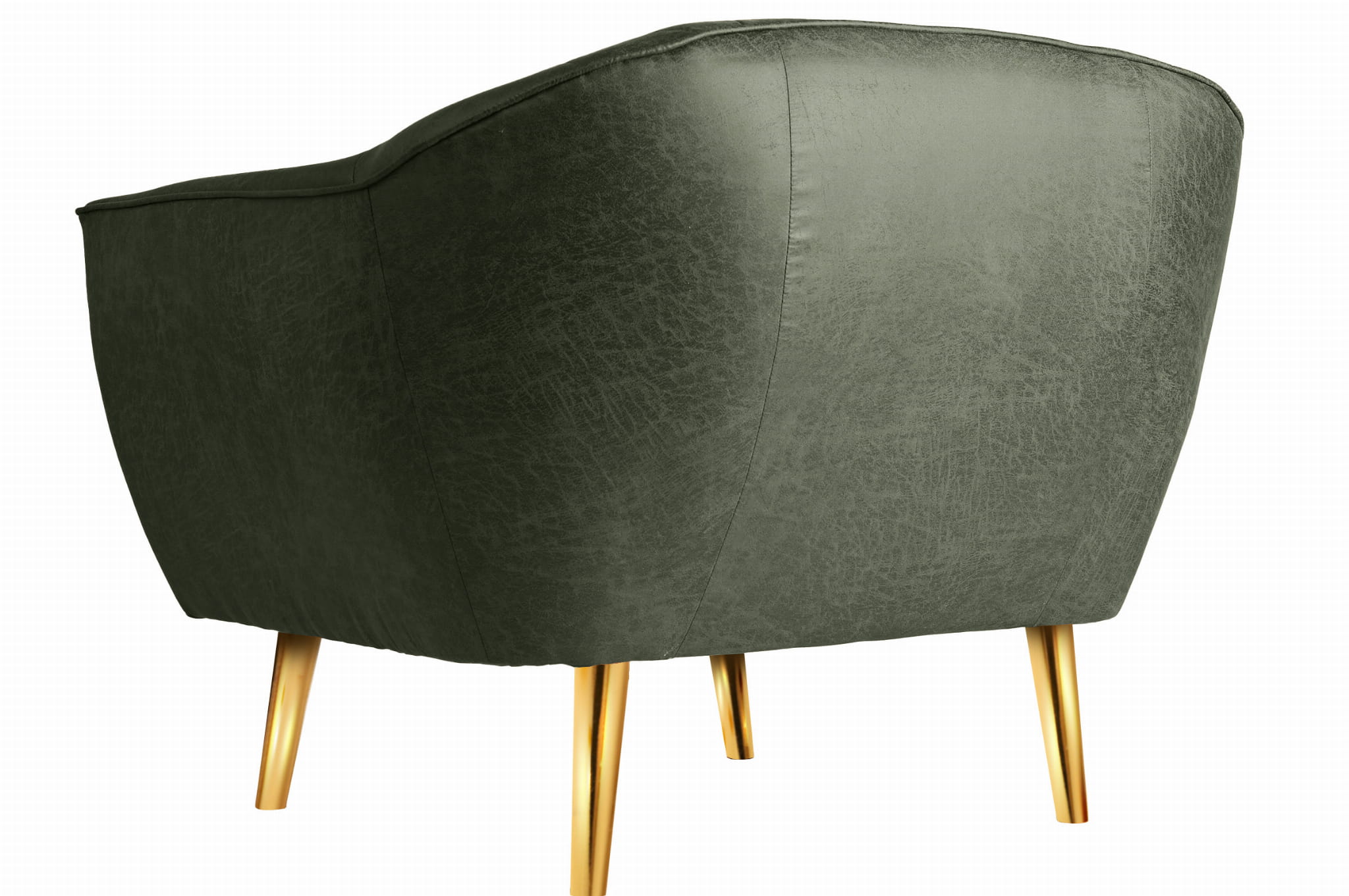 Fotel z ekoskóry ze złotymi nóżkami Rosa w kolorze zielonym z subtelnymi przeszyciami