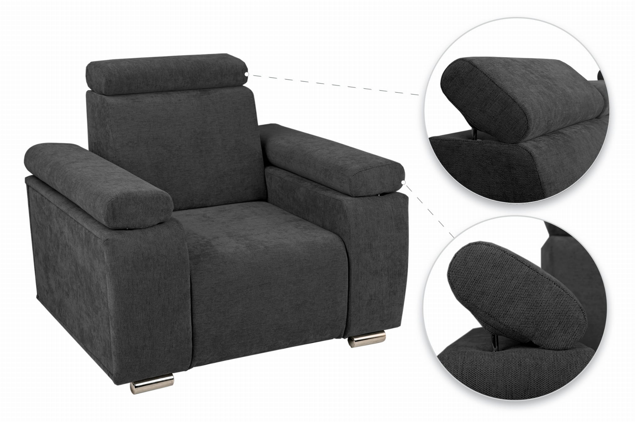 Fotel kupisz jako samodzielny produkt, a także możesz stworzyć własny zestaw mebli wypoczynkowych z regulowanymi zagłówkami i podłokietnikami idealnie dostosowany do Twoich potrzeb.
