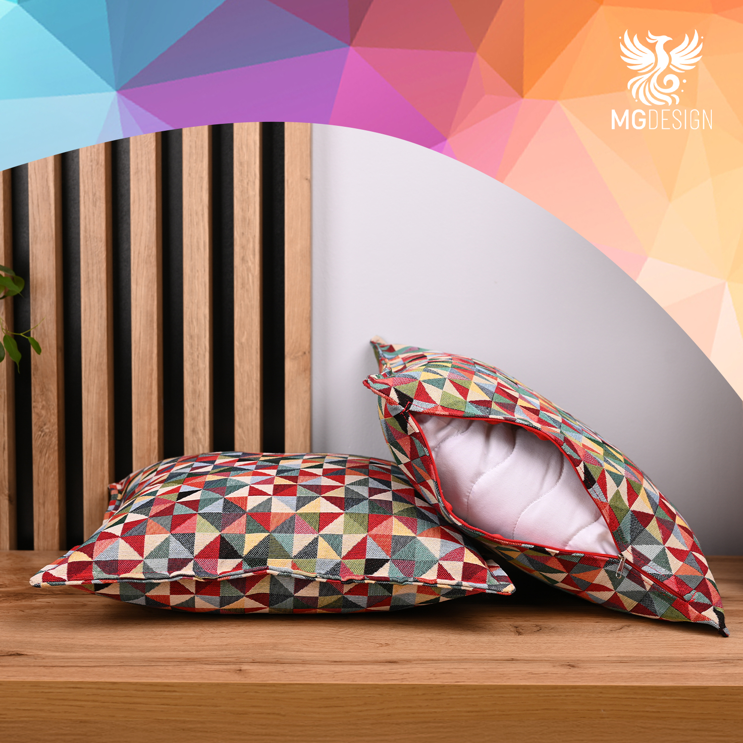 Poszewka dekoracyjna z kolorowym, wzorzystym motywem to propozycja, która ożywia wnętrze i nadaje mu indywidualnego charakteru. Bogata kolorystyka oraz zróżnicowany wzór przyciągają uwagę i stanowią mocny element aranżacji.
