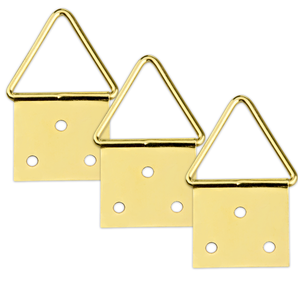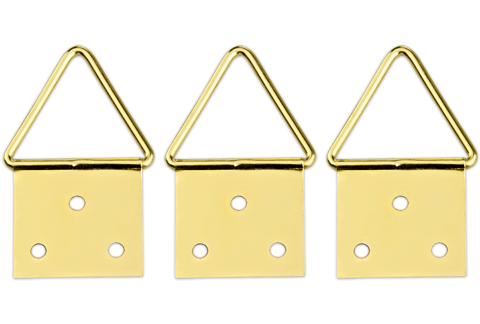 Komplet 3szt. stalowych zawieszek do ramek, obrazów oraz luster w złotym kolorze.