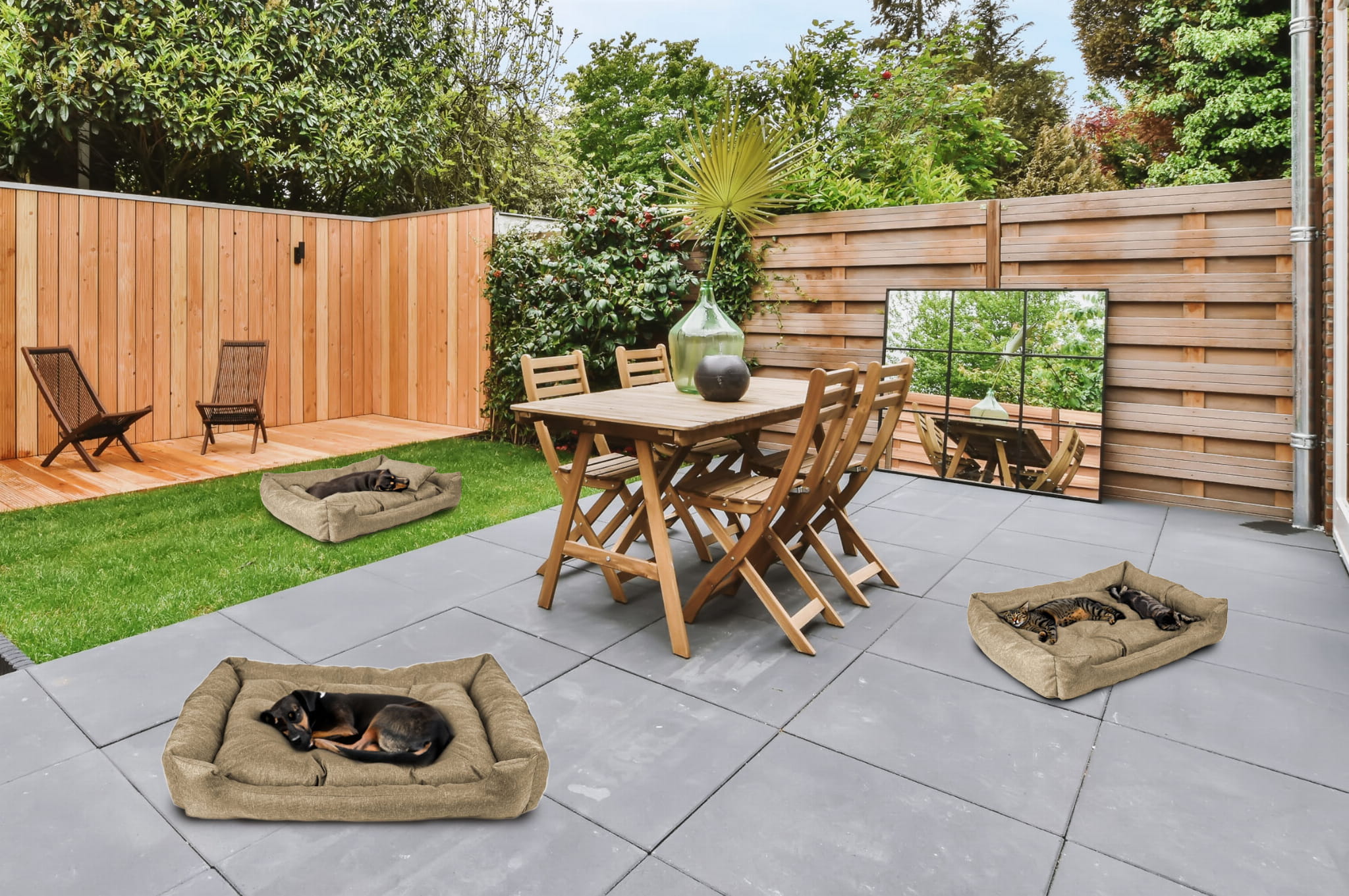 - Ciepło i izolacja: Gruba warstwa tkaniny i wypełnienie chroni przed zimnem, co sprawia, że legowisko jest idealne zarówno na zimowe, jak i letnie dni.
