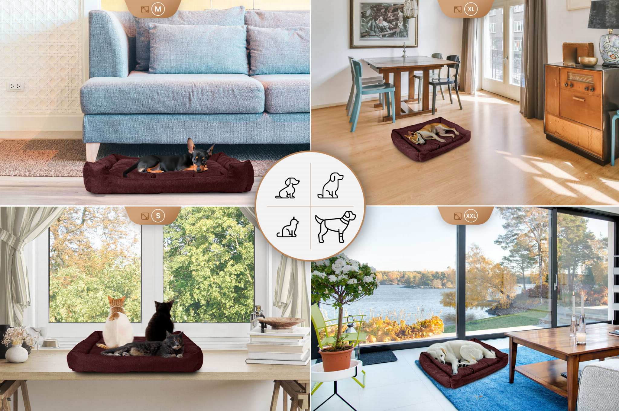 Legowisko dla psa 100x85x20 cm XL Snugly w kolorze bordowym – Poduszka dla psa, kota, zwierząt domowych