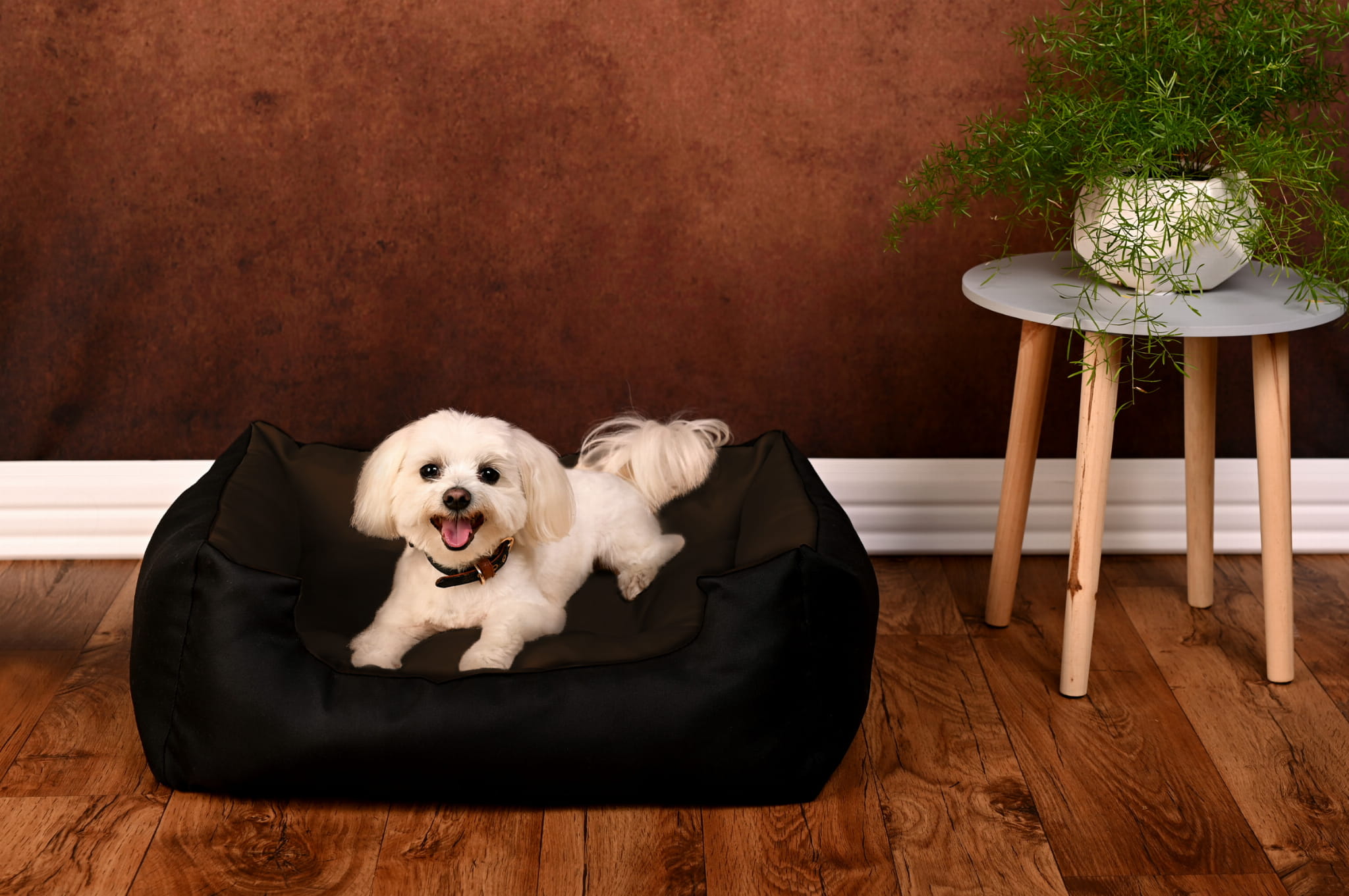 Puszyste legowisko dla psa z podwyższonymi bokami i dekoracyjnymi poduszkami to doskonałe miejsce do relaksu i wypoczynku Twojego zwierzęcia.