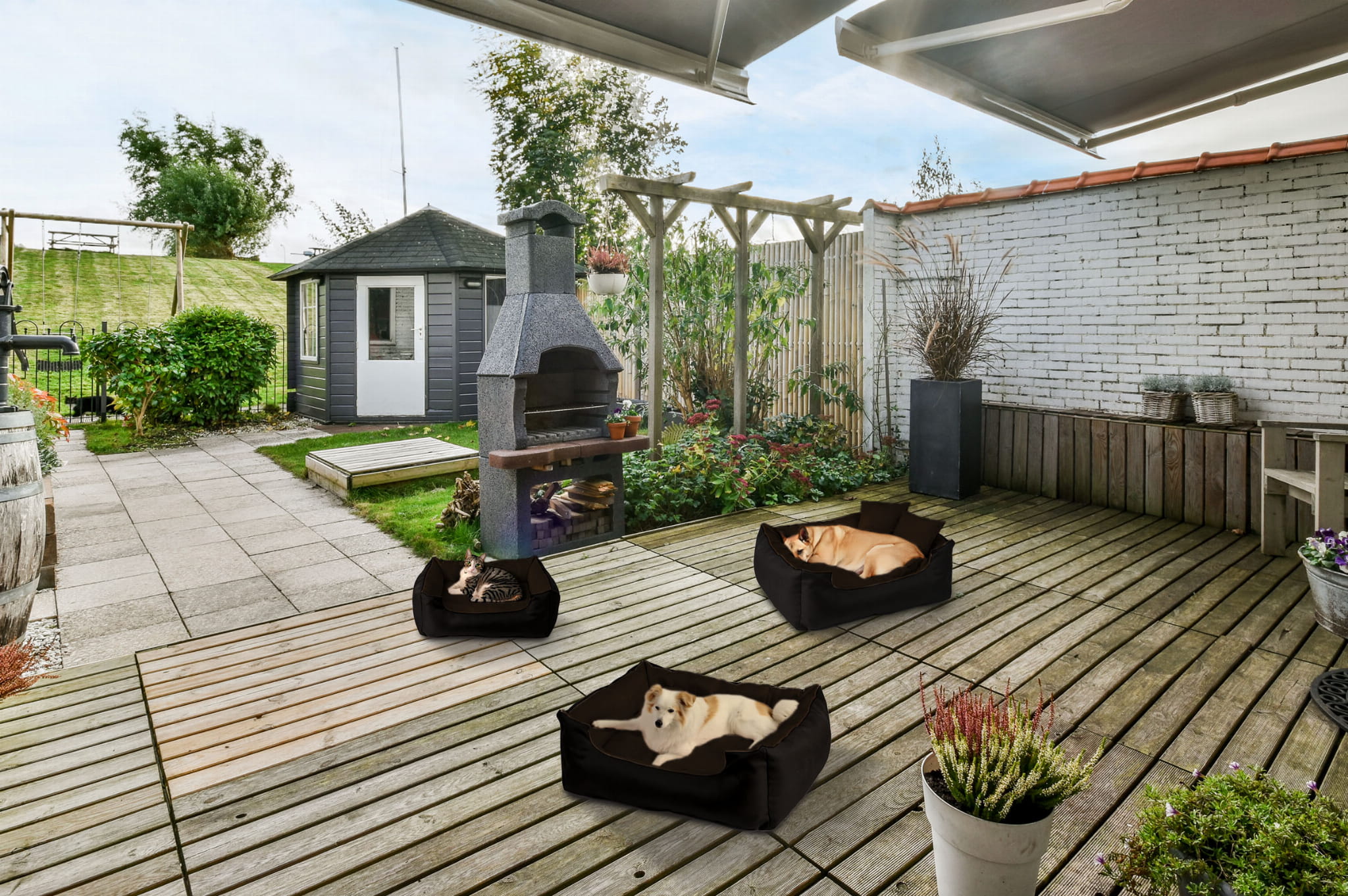 - Ochrona przed zimnem: Gruba warstwa tkaniny i wypełnienie chroni przed zimnem, co sprawia, że legowisko jest idealne zarówno na zimowe, jak i letnie dni.