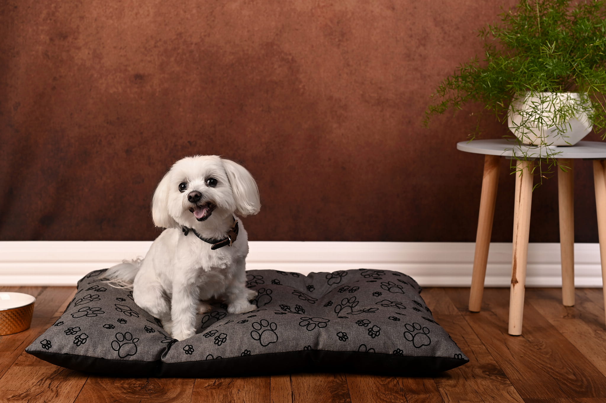 Miękkie, wygodne legowisko dla psa z uroczym wzorem łapek w rozmiarze
