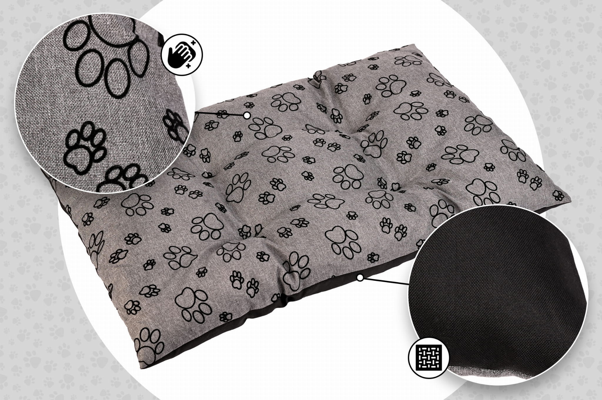 - Estetyczny design: Wzór w łapki nadaje legowisku wyjątkowy, uroczy wygląd, który doskonale komponuje się z wystrojem Twojego wnętrza.