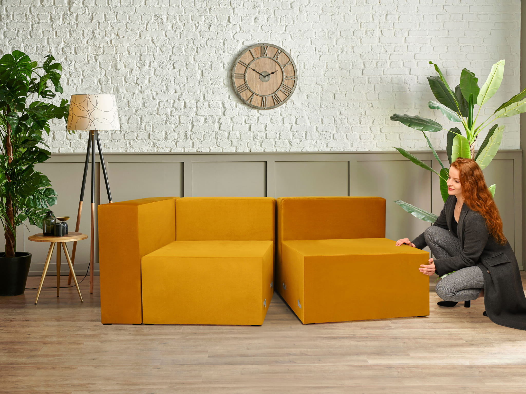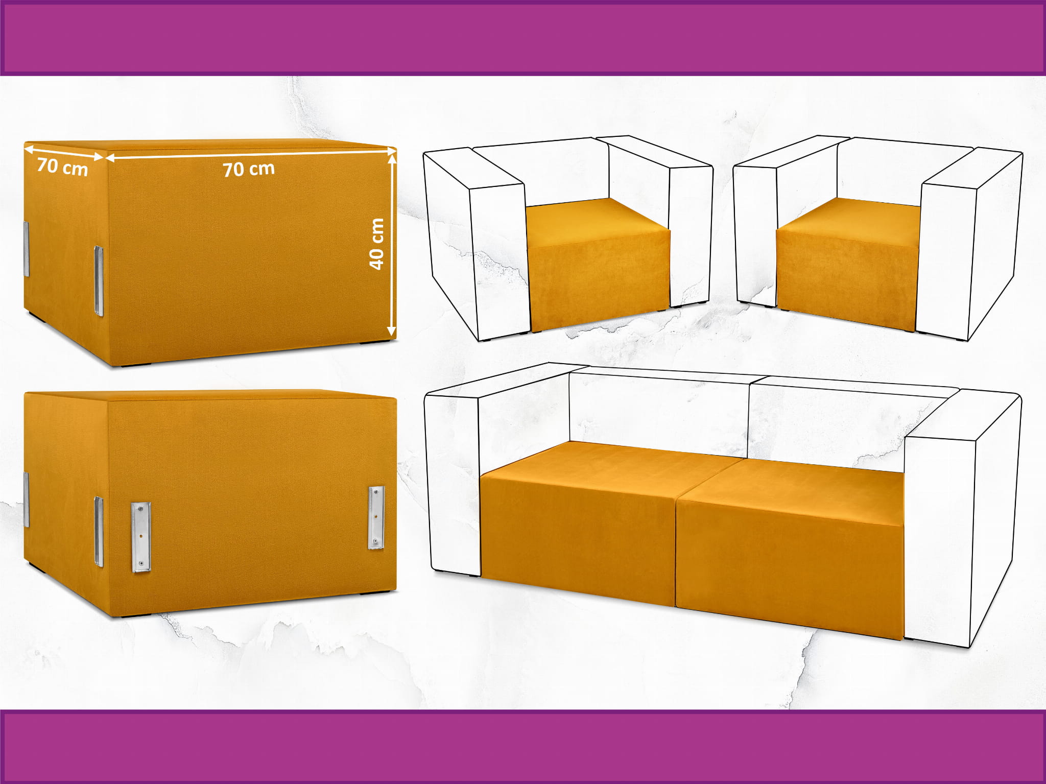 Miękkie tapicerowane siedzisko w kolorze miodowym LEON – element systemu modułowego do połączenia z pozostałymi modułami